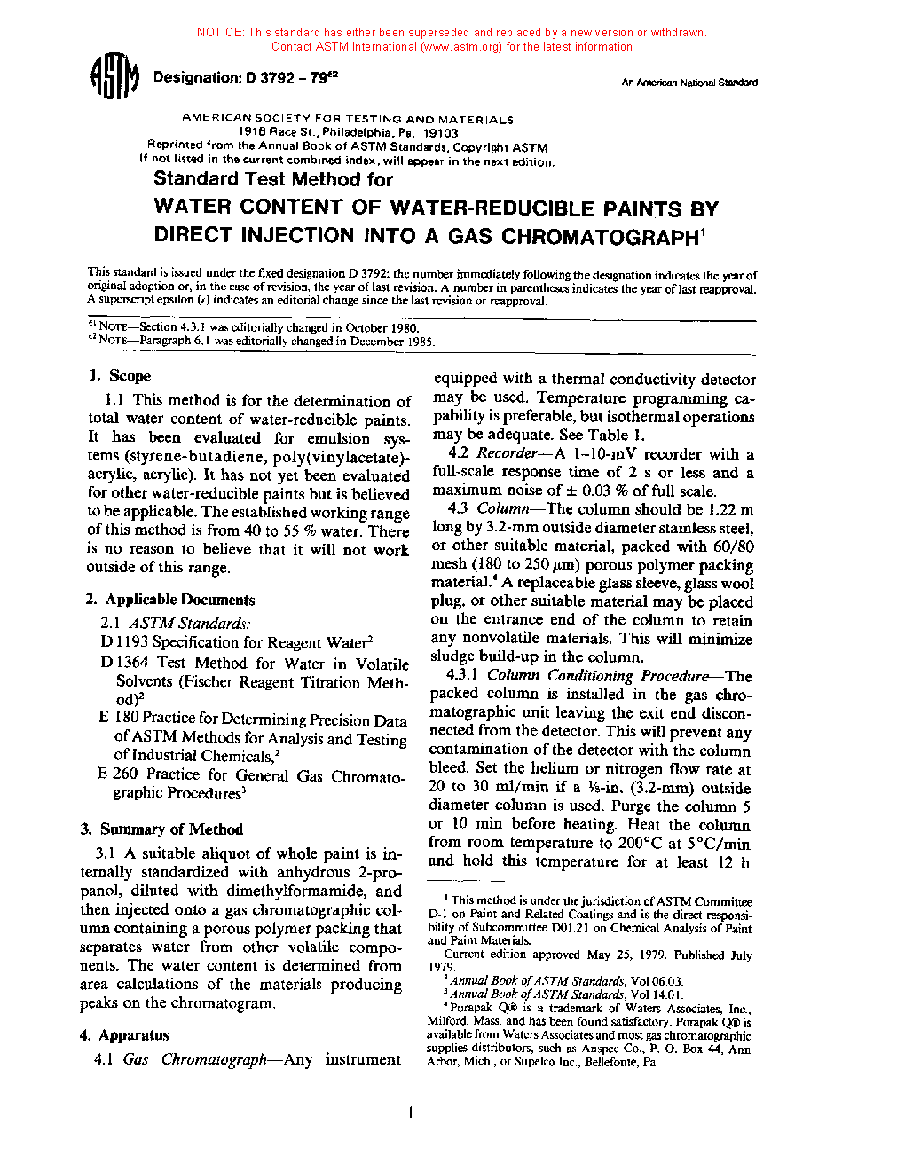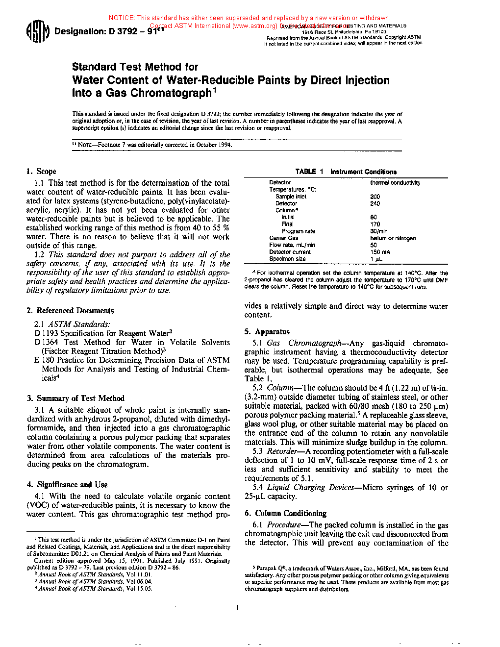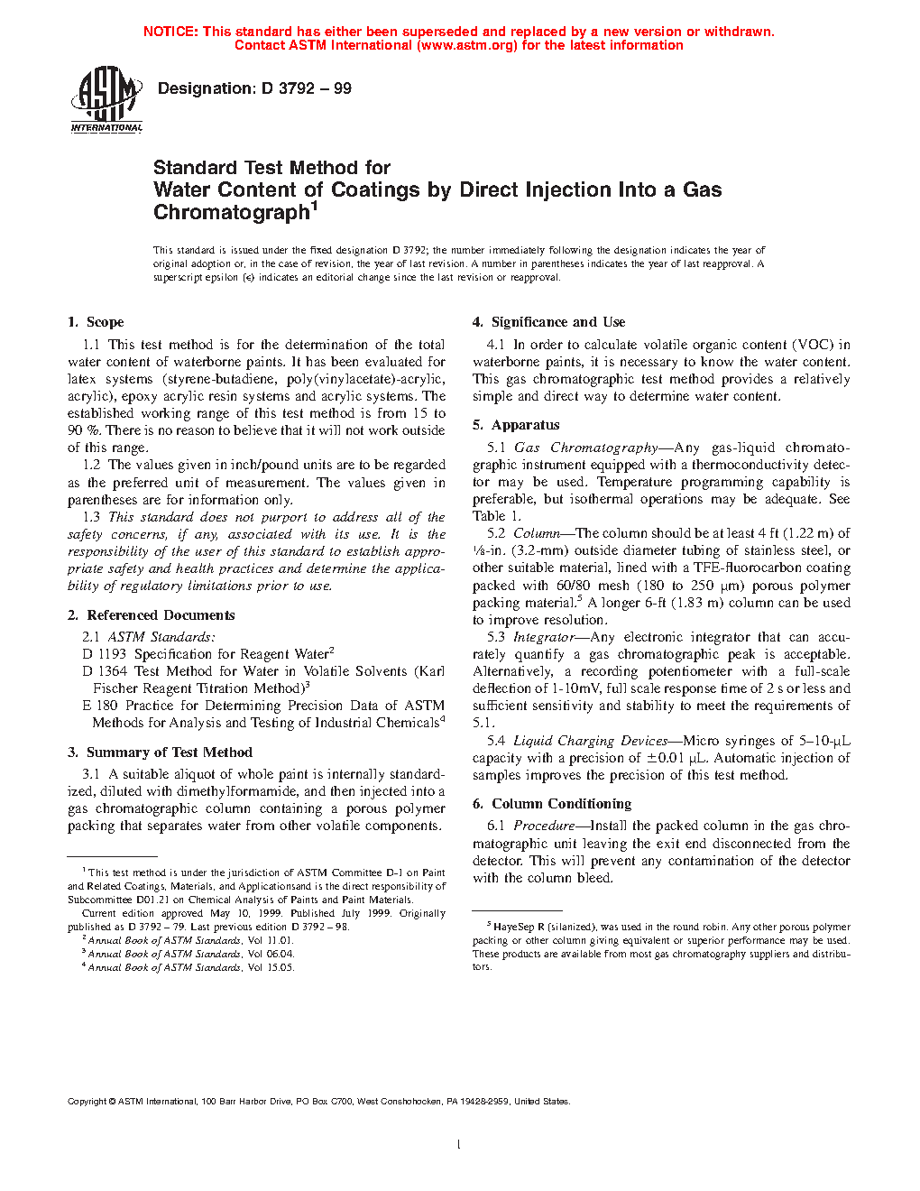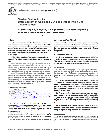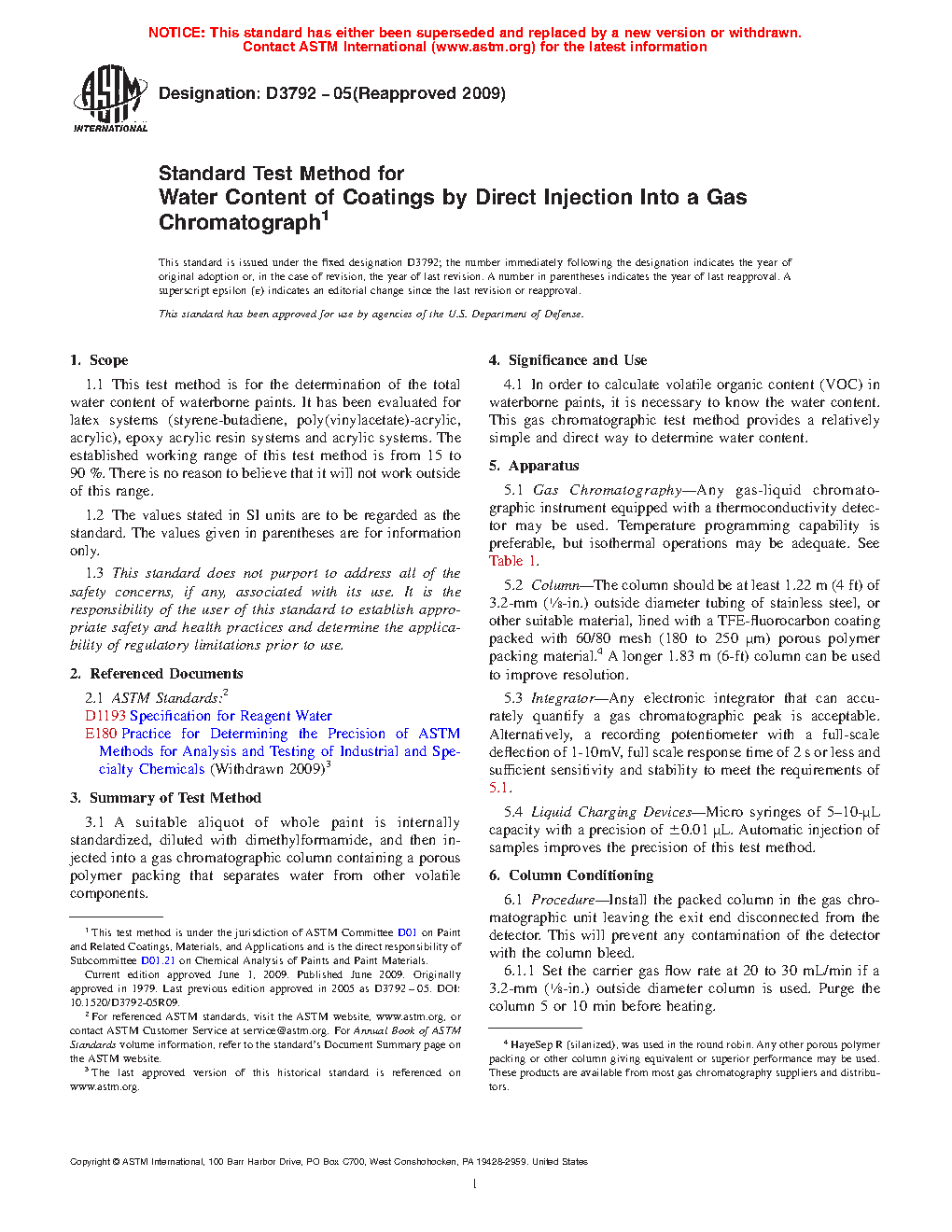 4.1 In order to calculate volatile organic content (VOC) in waterborne paints, it is necessary to know the water content. This gas chromatographic test method provides a relatively simple and direct way to determine water content.