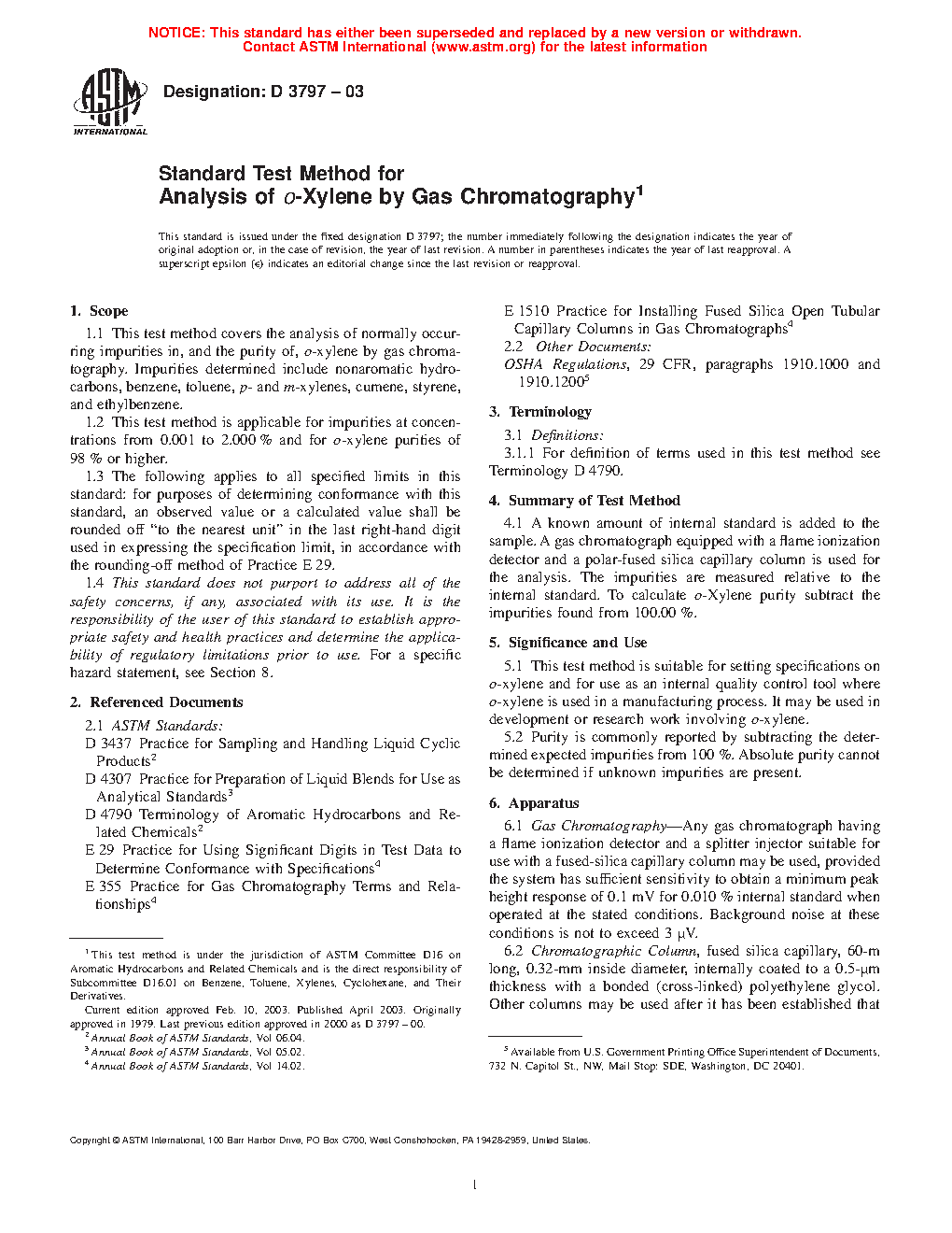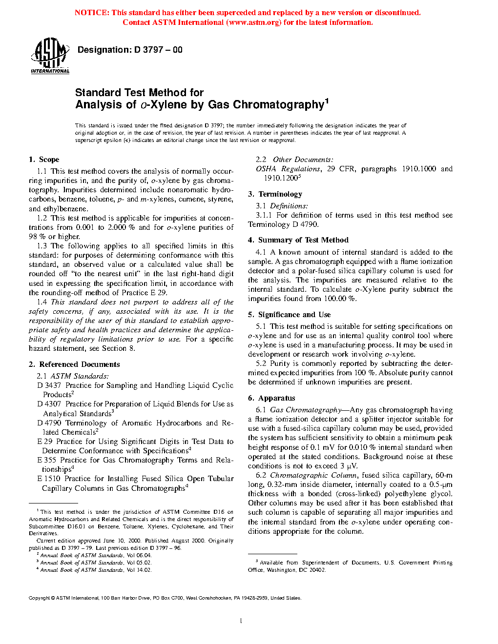 1.2 This test method is applicable for impurities at concentrations from 0.001 to 2.000 % and for o-xylene purities of 98 % or higher.