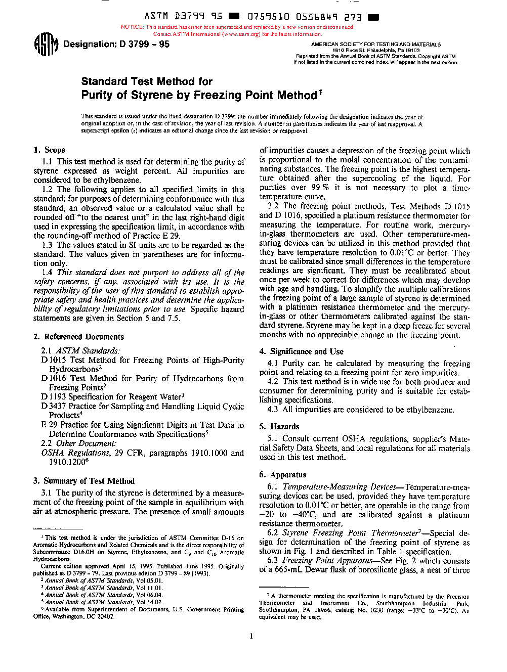 1.1 This test method is used for determining the purity of styrene expressed as weight percent. All impurities are considered to be ethylbenzene.
