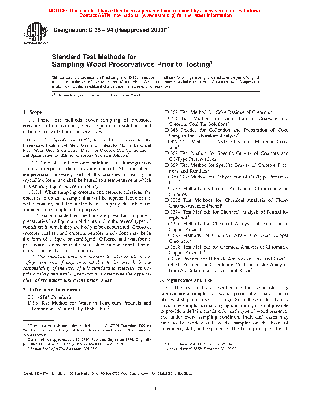ASTM D38-94(2000)e1