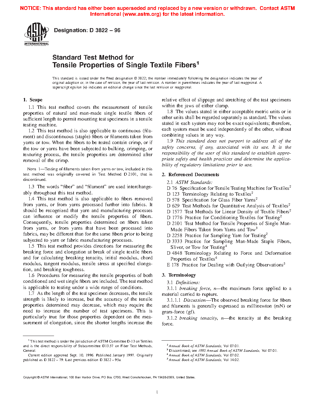 Note 1—Testing of filaments taken from yarns or tow, included in this test method was originally covered in Test Method D 2101, that is discontinued.