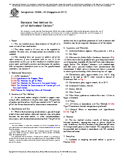 1.1 This test method covers determination of the pH of a water extract of activated carbon.