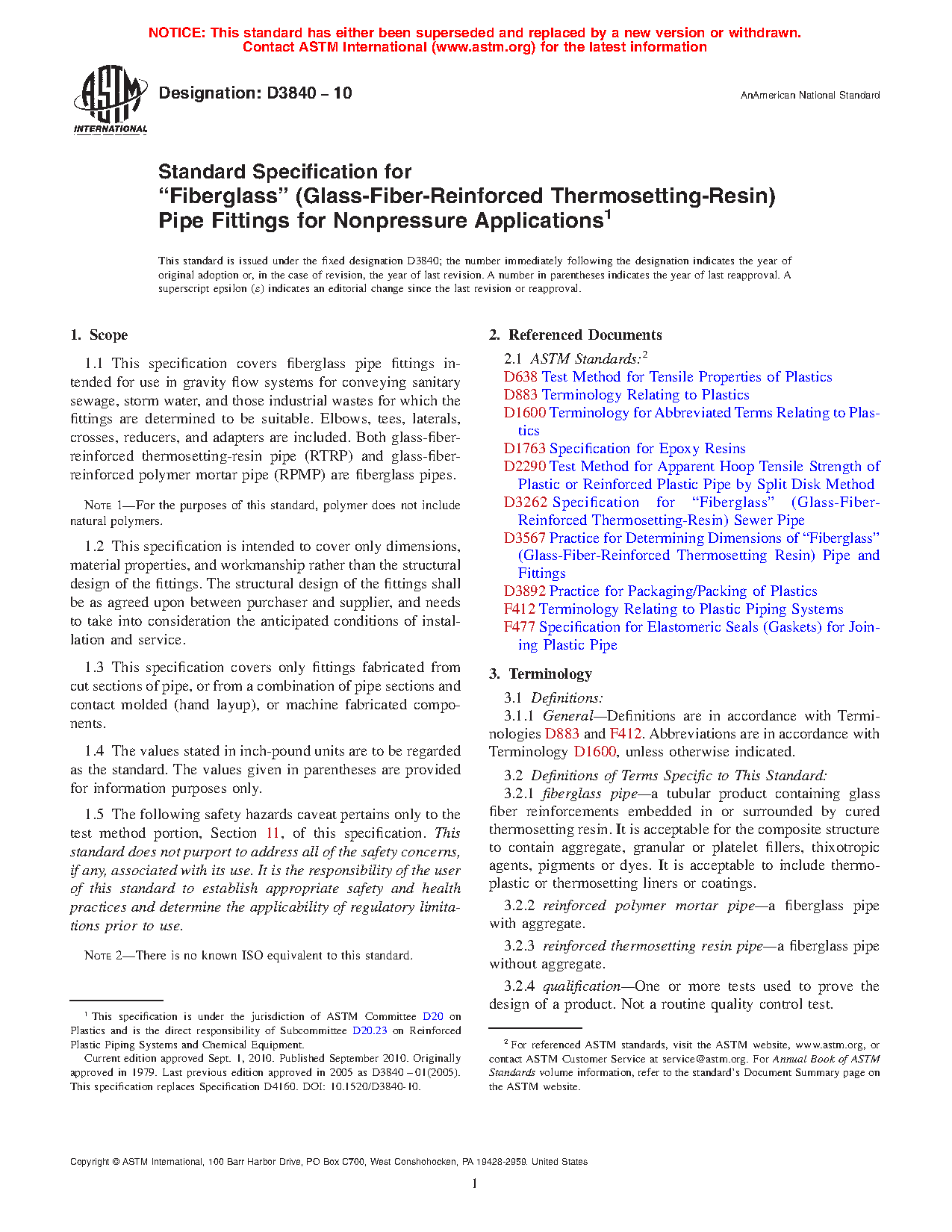 1.3 This specification covers only fittings fabricated from cut sections of pipe, or from a combination of pipe sections and contact molded (hand layup), or machine fabricated components.
