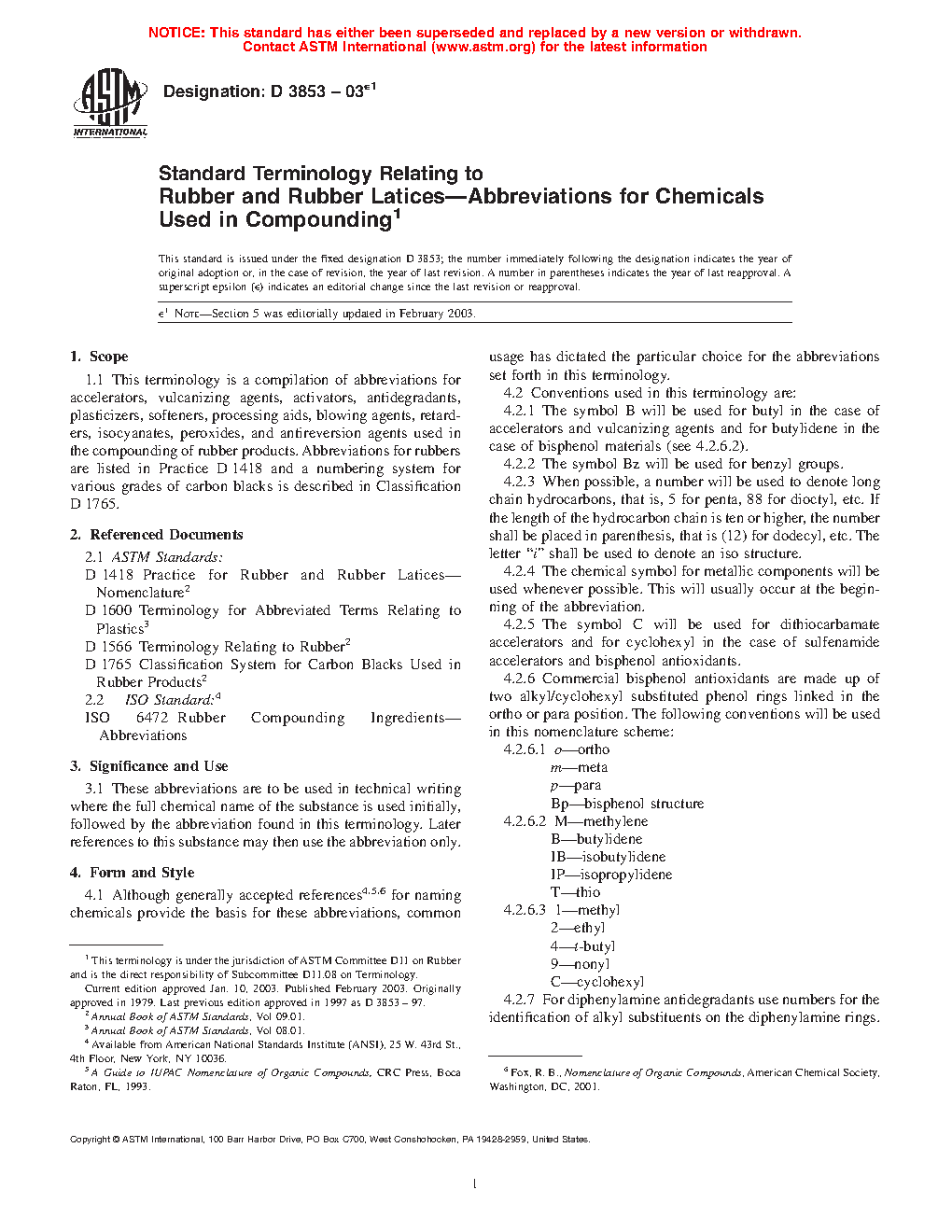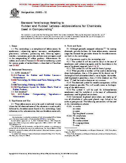 Standard Terminology Relating to Rubber and Rubber Latices—Abbreviations for Chemicals Used in Compounding