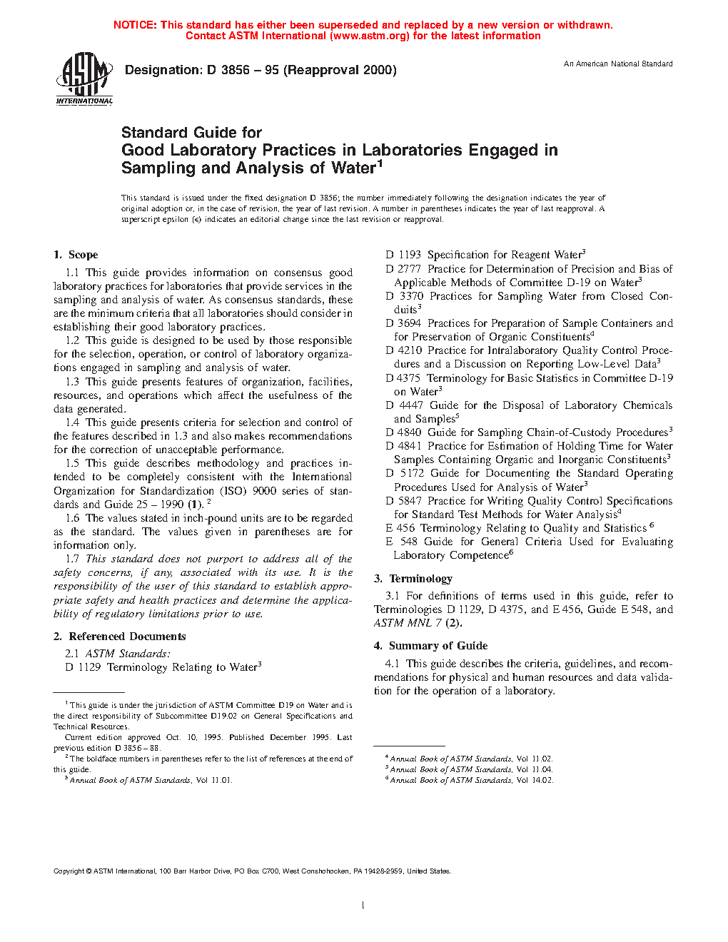 5.3 Laboratories that conduct water sampling and generate analytical data, and those persons who have the responsibility for selecting a laboratory to perform water quality studies, need to use criteria, guidelines, and recommendations that have been developed by consensus and are well accepted in making this selection.