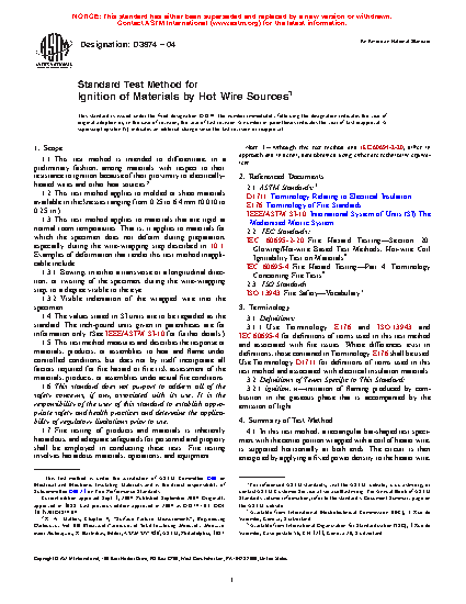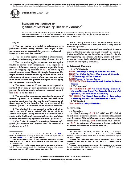 1.1 This test method is intended to differentiate, in a preliminary fashion, among materials with respect to their resistance to ignition because of their proximity to electrically-heated wires and other heat sources.