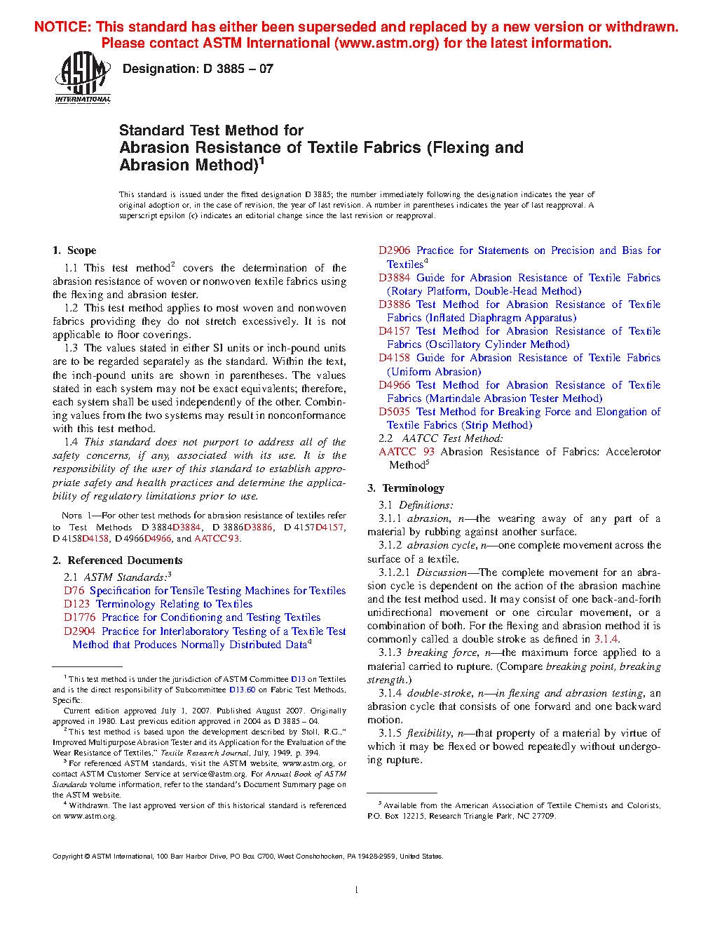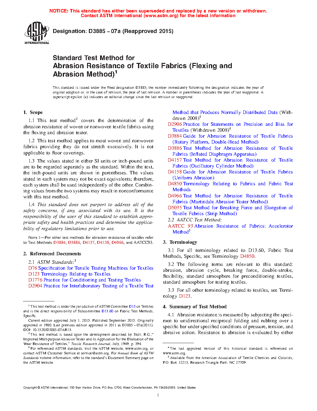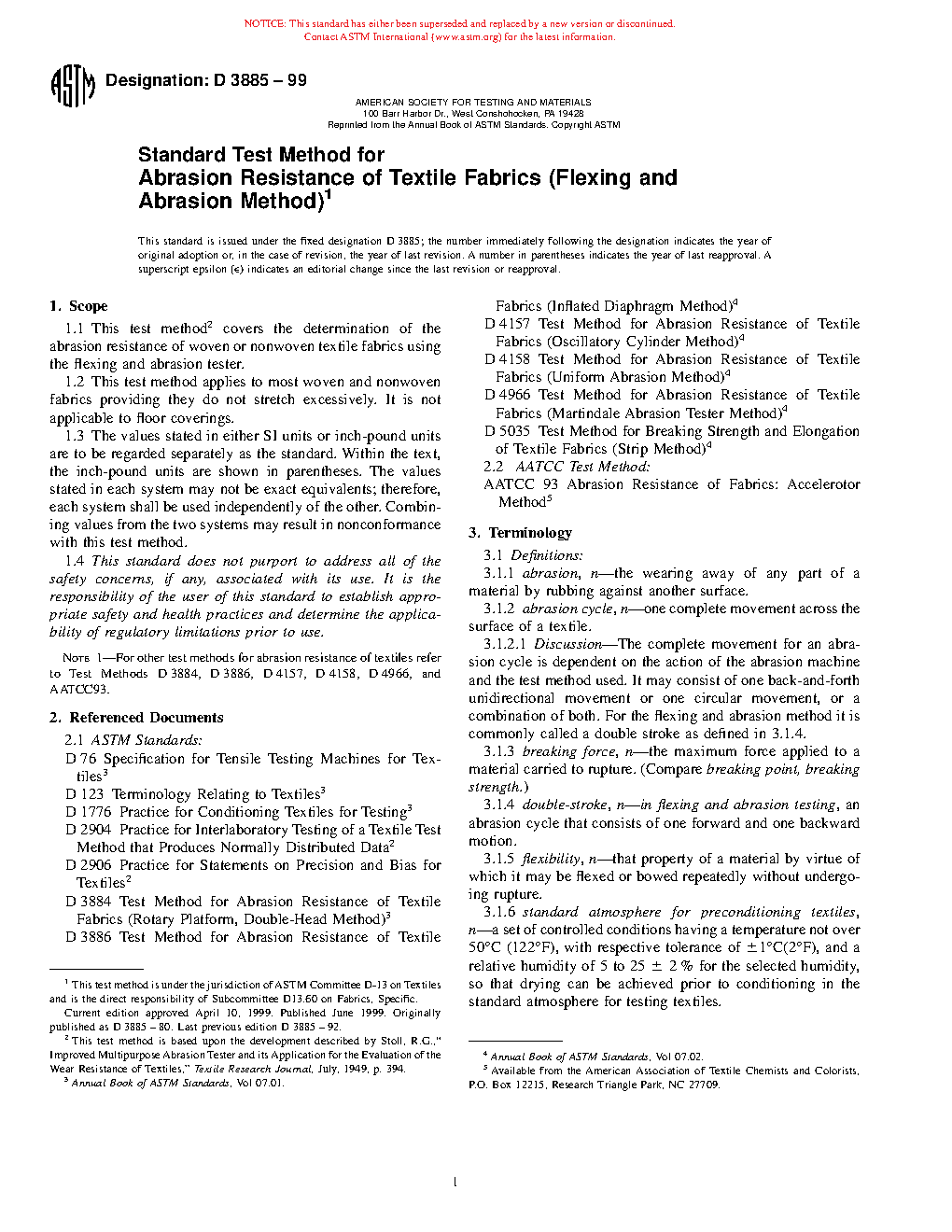 Note 1: For other test methods for abrasion resistance of textiles refer to Test Methods D3884, D3886, D4157, D4158, D4966, and AATCC93.