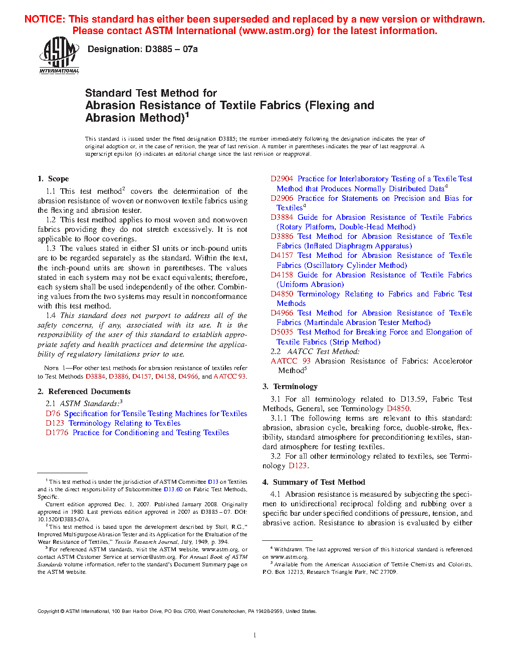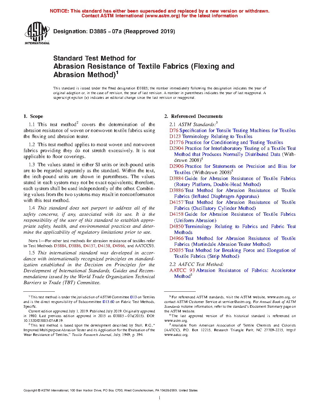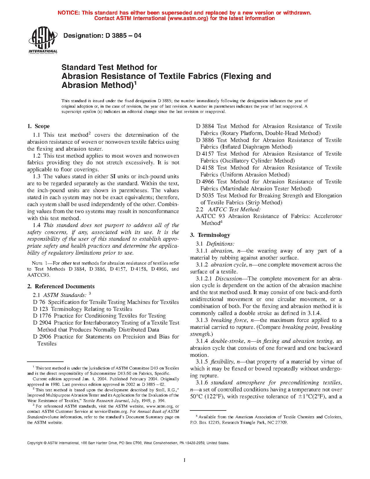 Note 1: For other test methods for abrasion resistance of textiles refer to Test Methods D3884, D3886, D4157, D4158, D4966, and AATCC93.