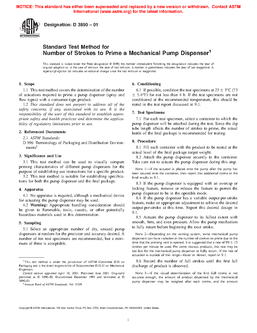 2.2 This practice is suitable for establishing specifications for both the pump dispenser and the final package.