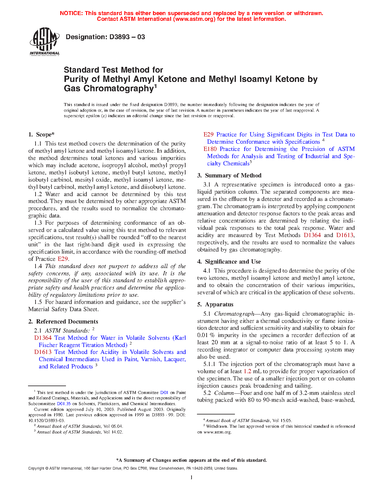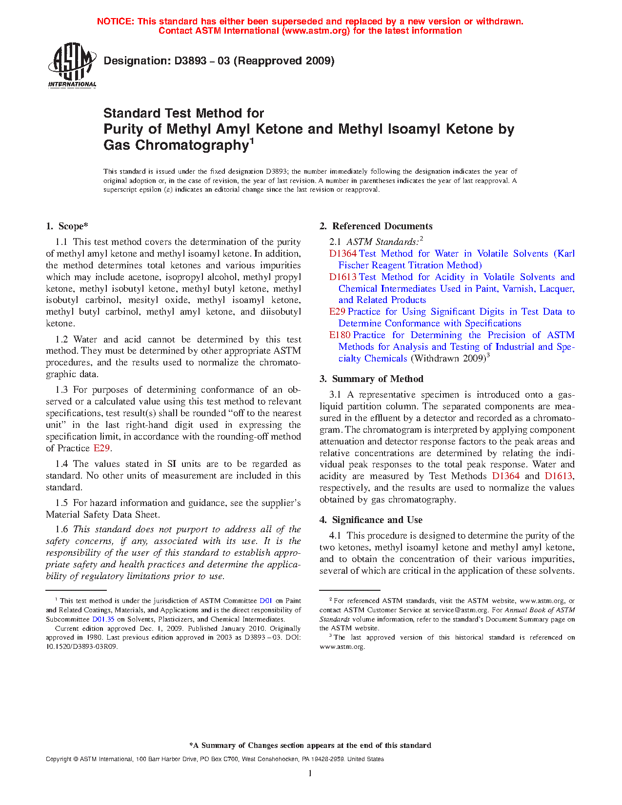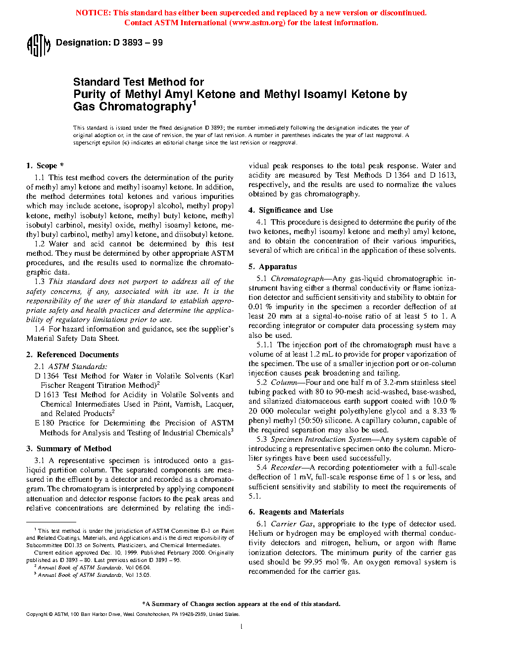 This procedure is designed to determine the purity of the two ketones, methyl isoamyl ketone and methyl amyl ketone, and to obtain the concentration of their various impurities, several of which are critical in the application of these solvents.