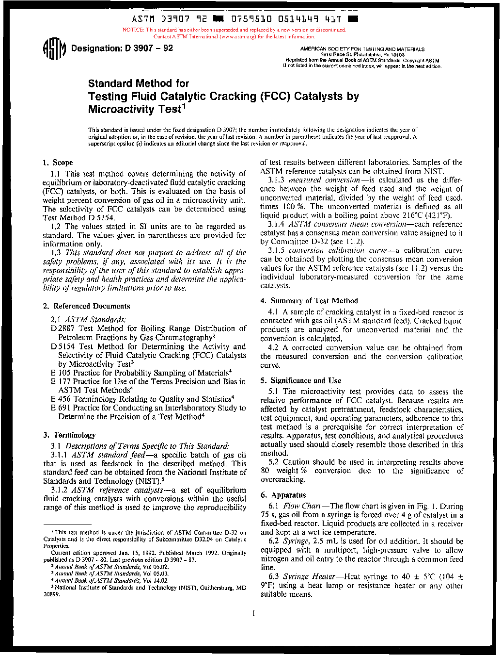 1.1 This test method covers determining the activity of equilibrium or laboratory-deactivated fluid catalytic cracking (FCC) catalysts, or both. This is evaluated on the basis of weight percent conversion of gas oil in a microactivity unit. The selectivity of FCC catalysts can be determined using Test Method D 5154