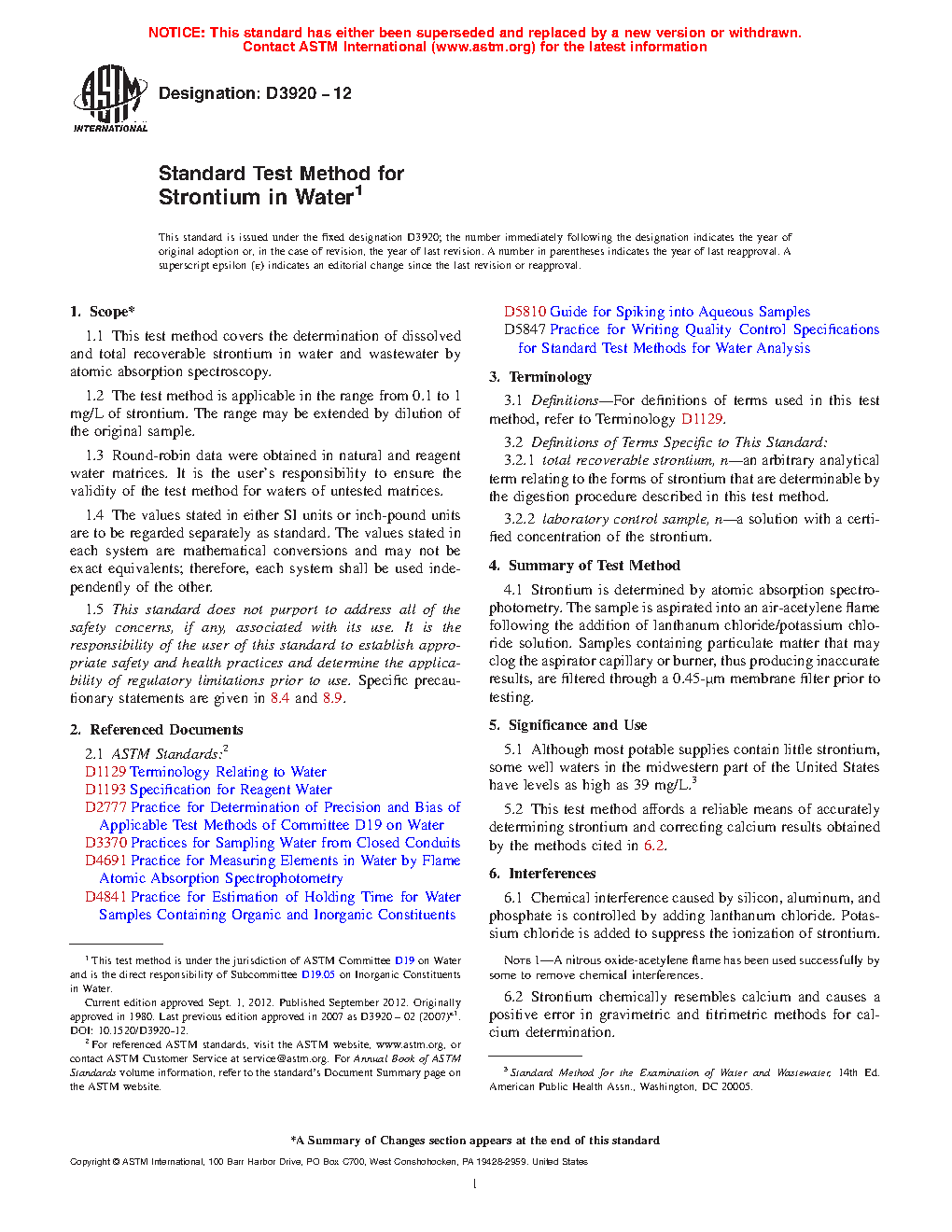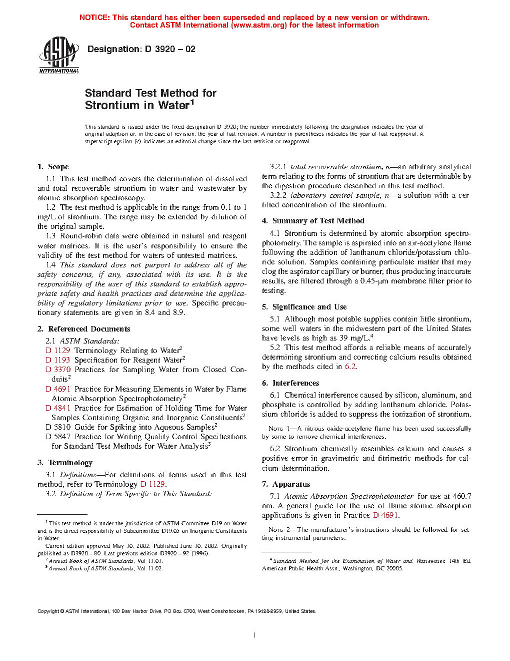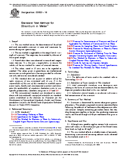 1.1 This test method covers the determination of dissolved and total recoverable strontium in water and wastewater by atomic absorption spectroscopy.