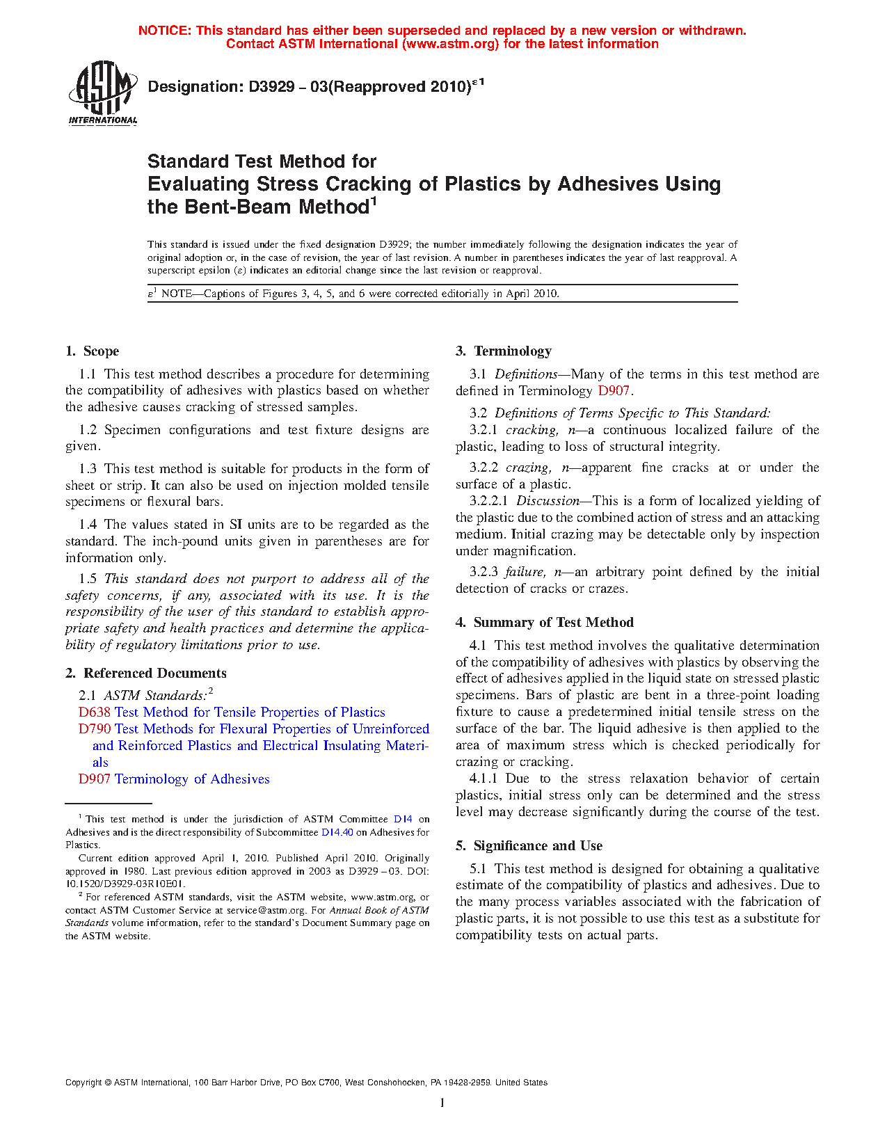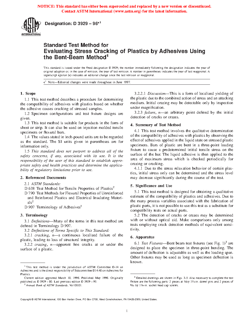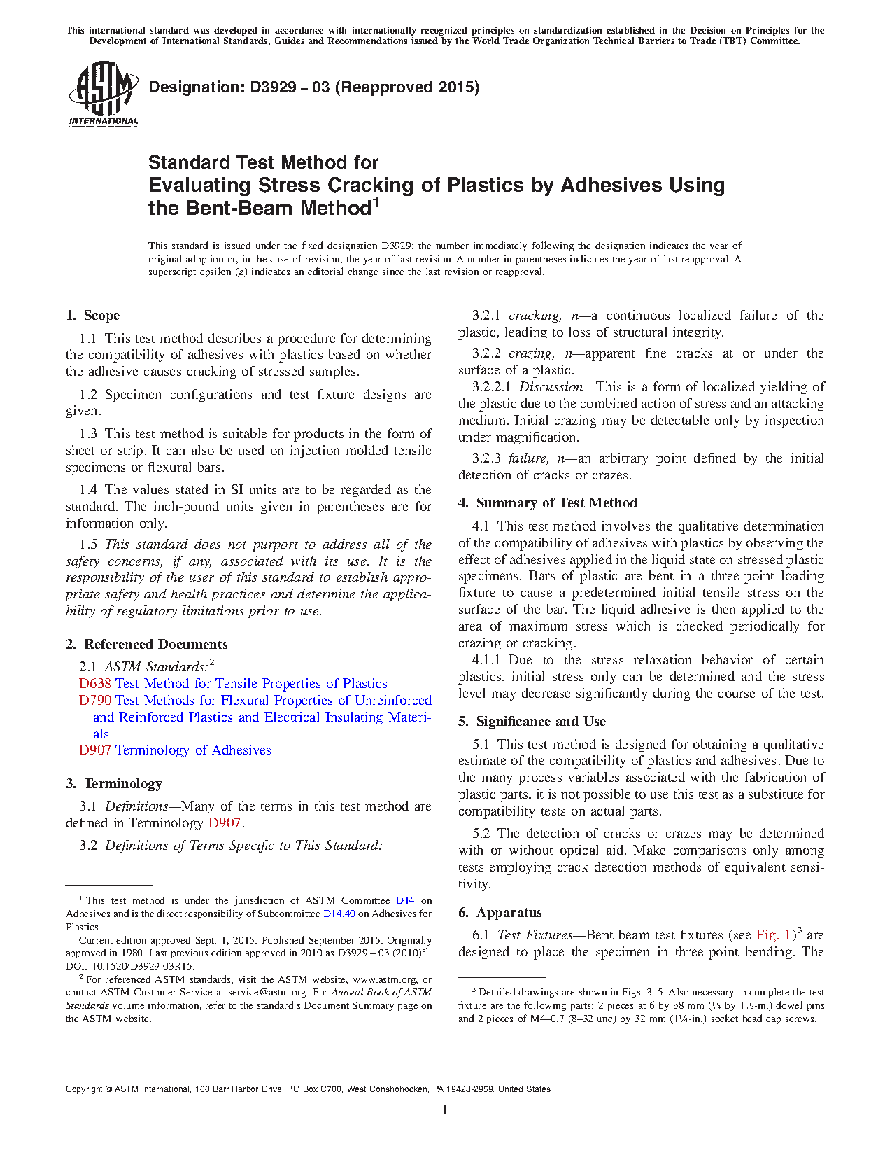 1.1 This test method describes a procedure for determining the compatibility of adhesives with plastics based on whether the adhesive causes cracking of stressed samples.