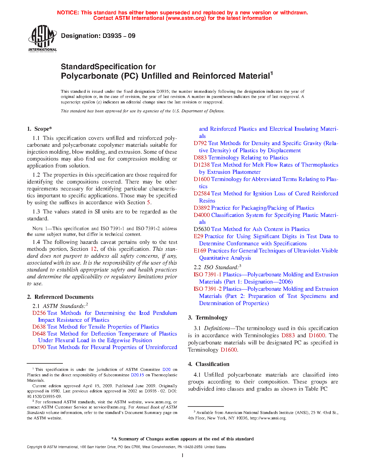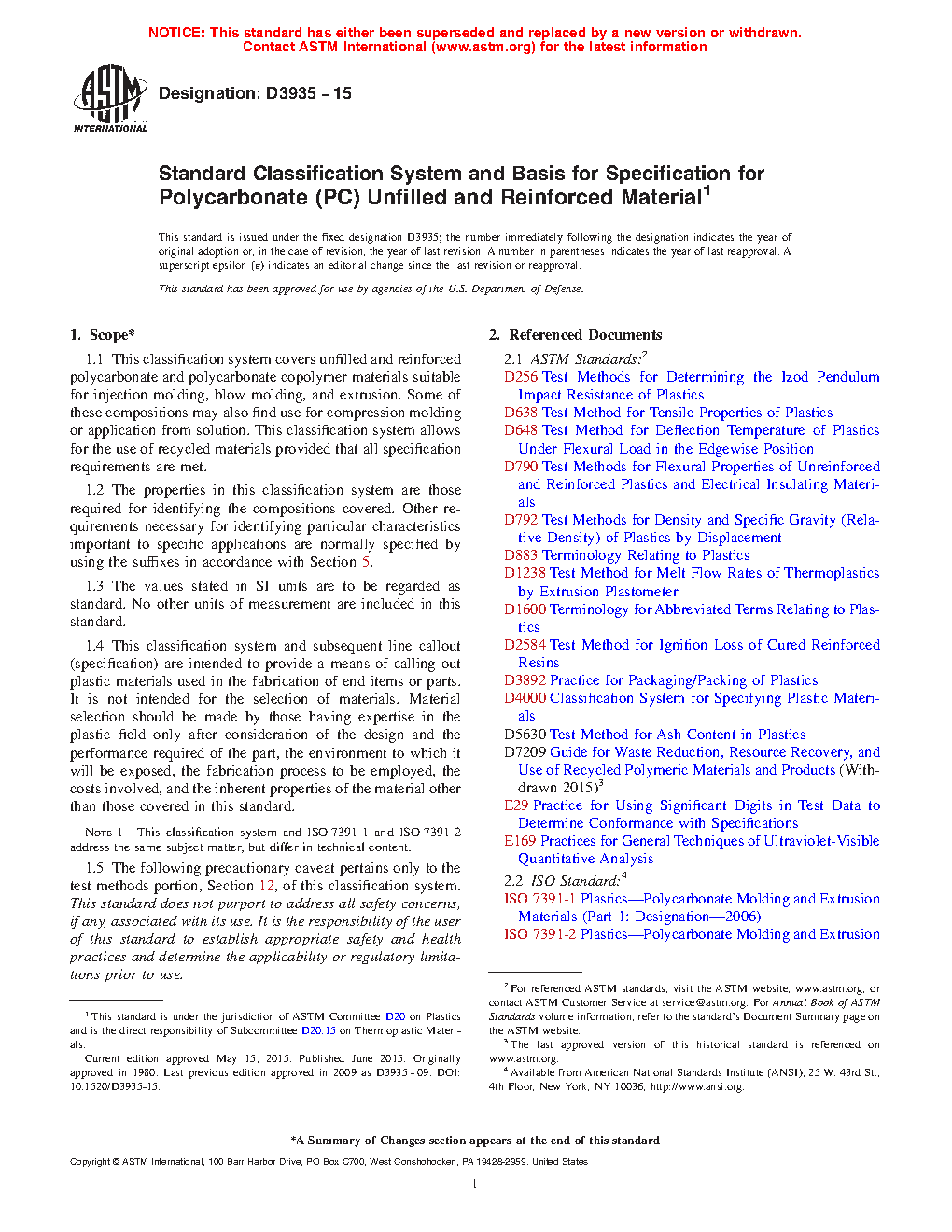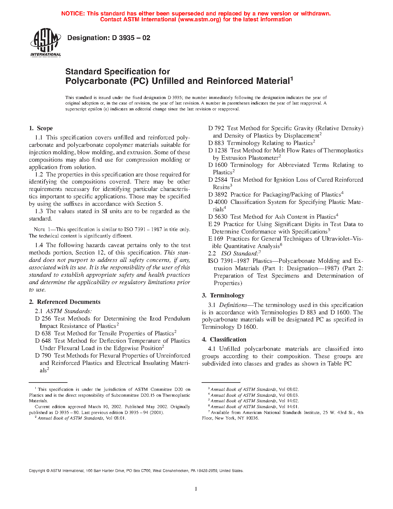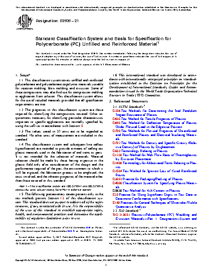 1.1 This classification system covers unfilled and reinforced polycarbonate and polycarbonate copolymer materials suitable for injection molding, blow molding, and extrusion. Some of these compositions may also find use for compression molding or application from solution. This classification system allows for the use of recycled materials provided that all specification requirements are met.