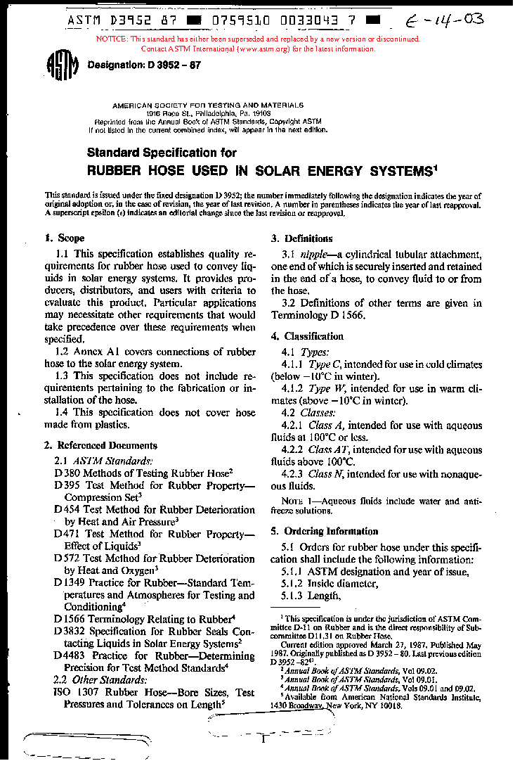 Specification for Rubber Hose Used in Solar Energy Systems