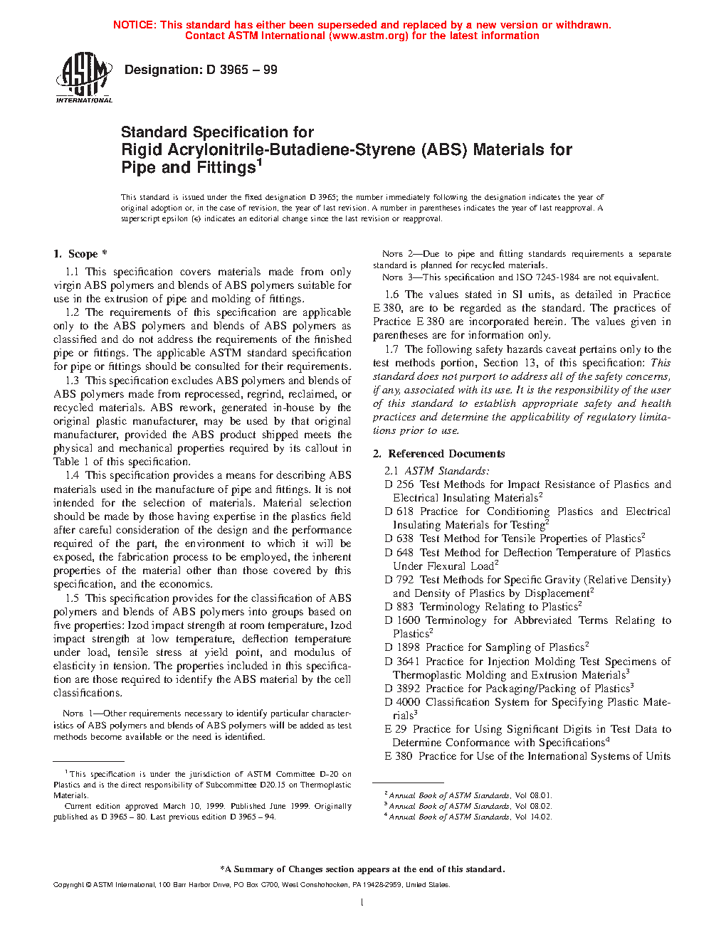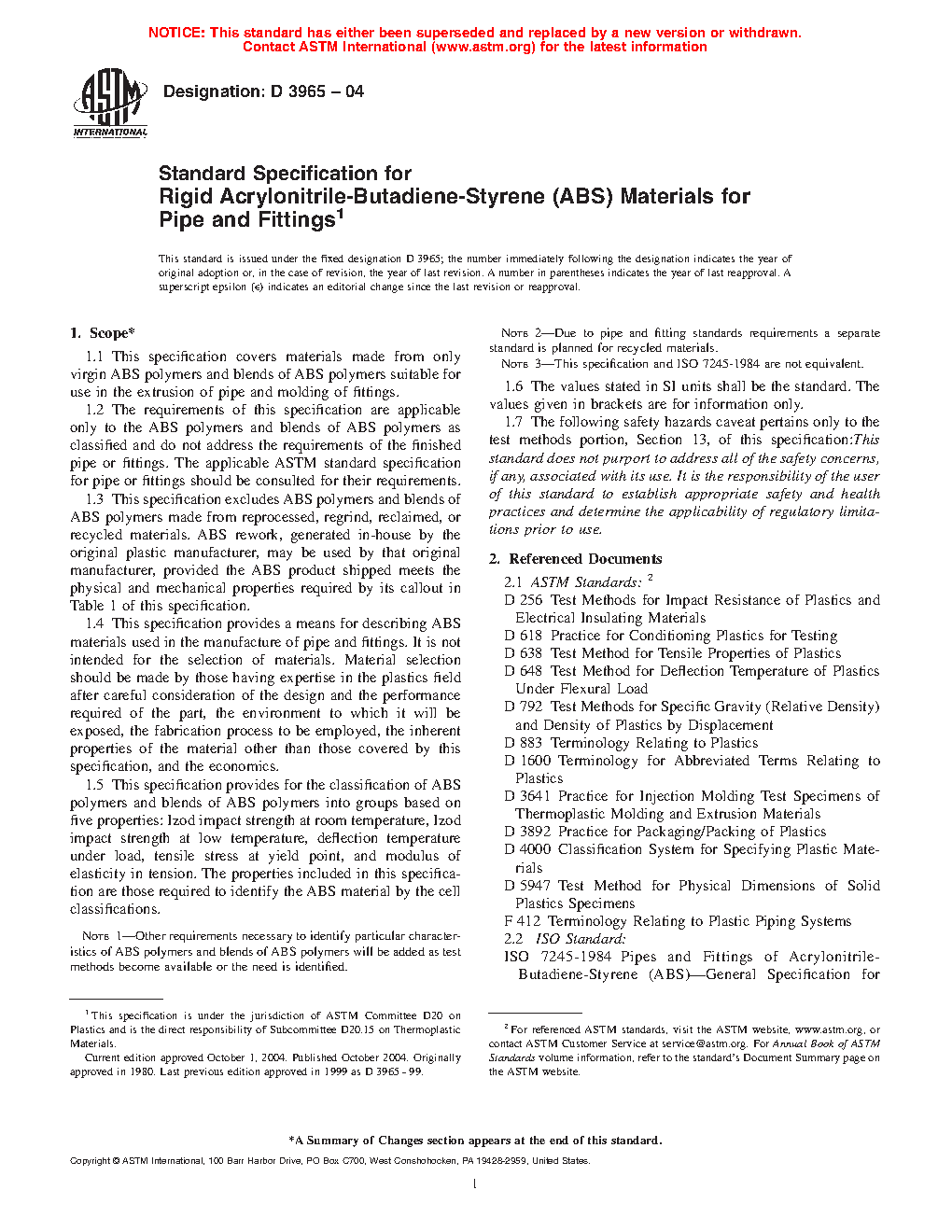 1.2 The requirements of this classification system are applicable only to the ABS polymers and blends of ABS polymers as classified and do not address the requirements of the finished pipe or fittings. The applicable ASTM standard specification for pipe or fittings shall be consulted for their requirements.