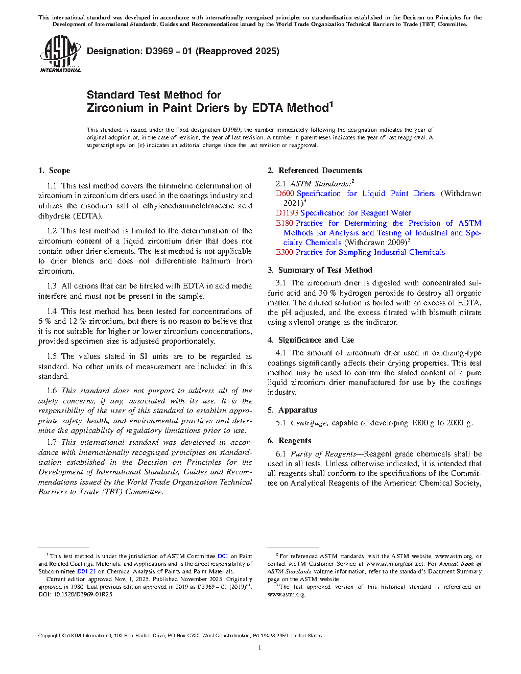 4.1 The amount of zirconium drier used in oxidizing-type coatings significantly affects their drying properties. This test method may be used to confirm the stated content of a pure liquid zirconium drier manufactured for use by the coatings industry.