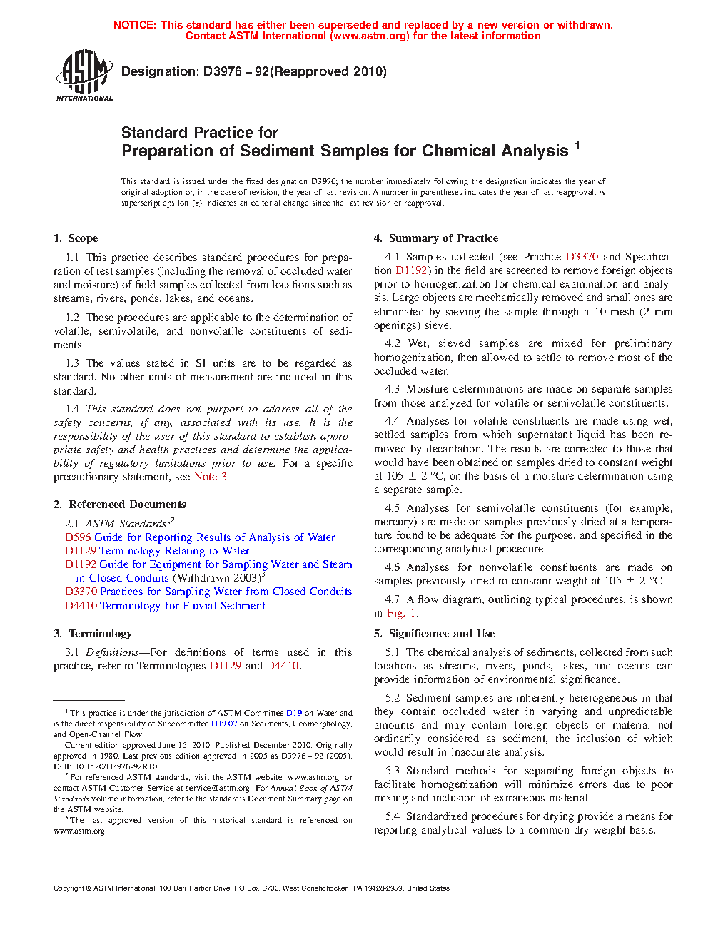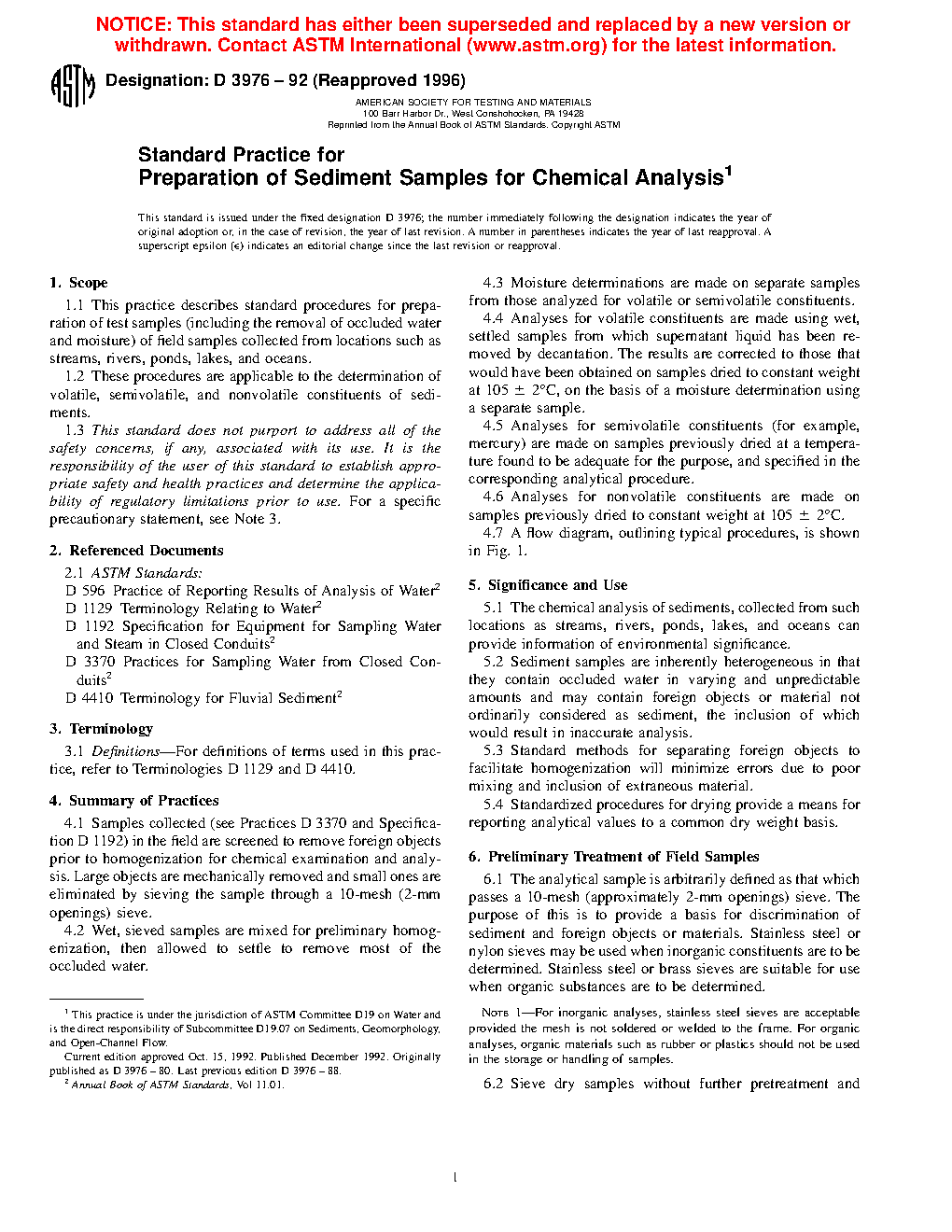 1.1 This practice describes standard procedures for preparation of test samples (including the removal of occluded water and moisture) of field samples collected from locations such as streams, rivers, ponds, lakes, and oceans.