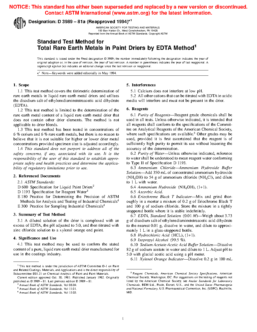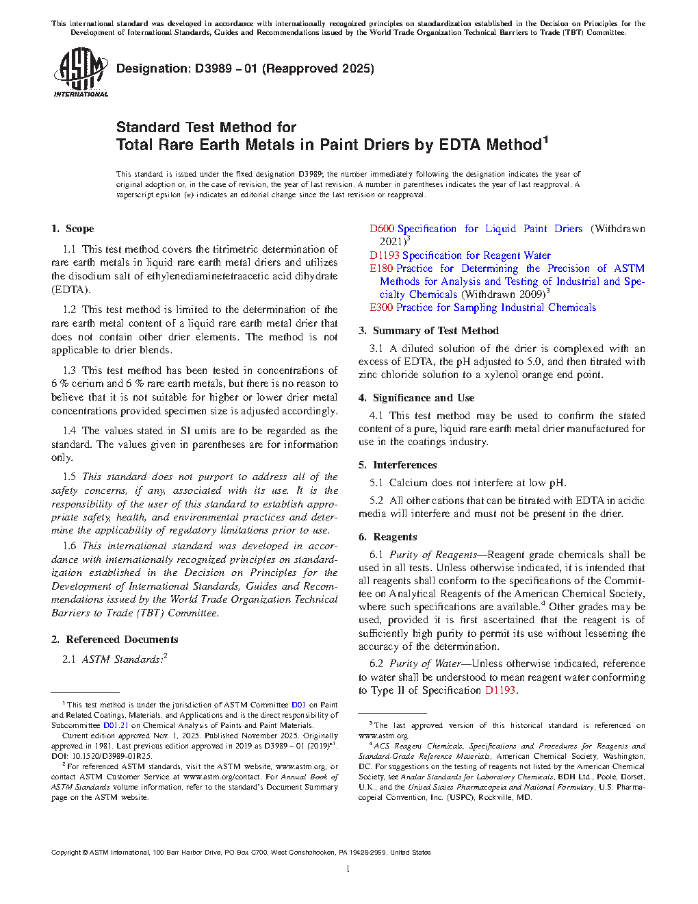 4.1 This test method may be used to confirm the stated content of a pure, liquid rare earth metal drier manufactured for use in the coatings industry.