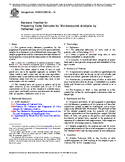 Samples prepared by this practice are used for microscopical determination of the textural components in coke (see Test Method D5061).