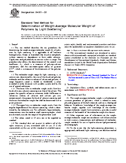 1.1 This test method describes the test procedures for determining the weight-average molecular weight M