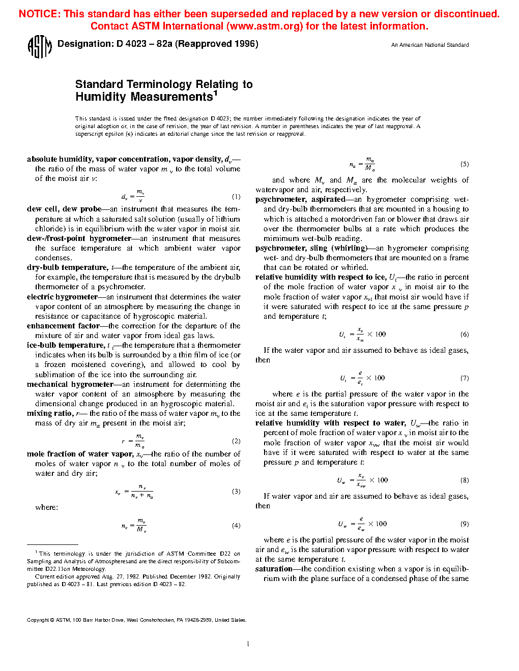 Standard Terminology Relating to Humidity Measurements (Withdrawn 2002)