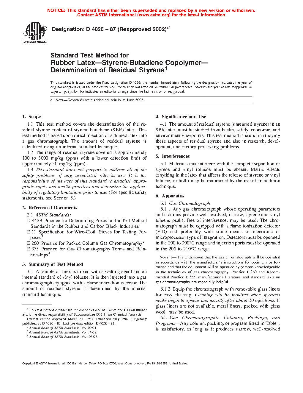 1.2 The range of residual styrene covered is approximately 100 to 3000 mg/kg (ppm) with a lower detection limit of approximately 50 mg/kg (ppm).