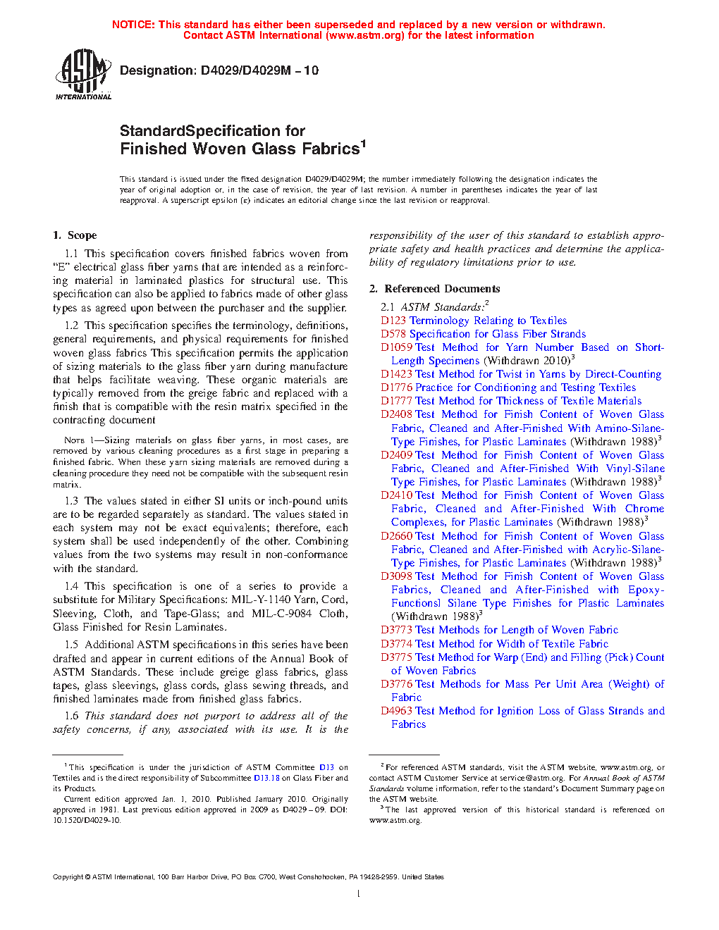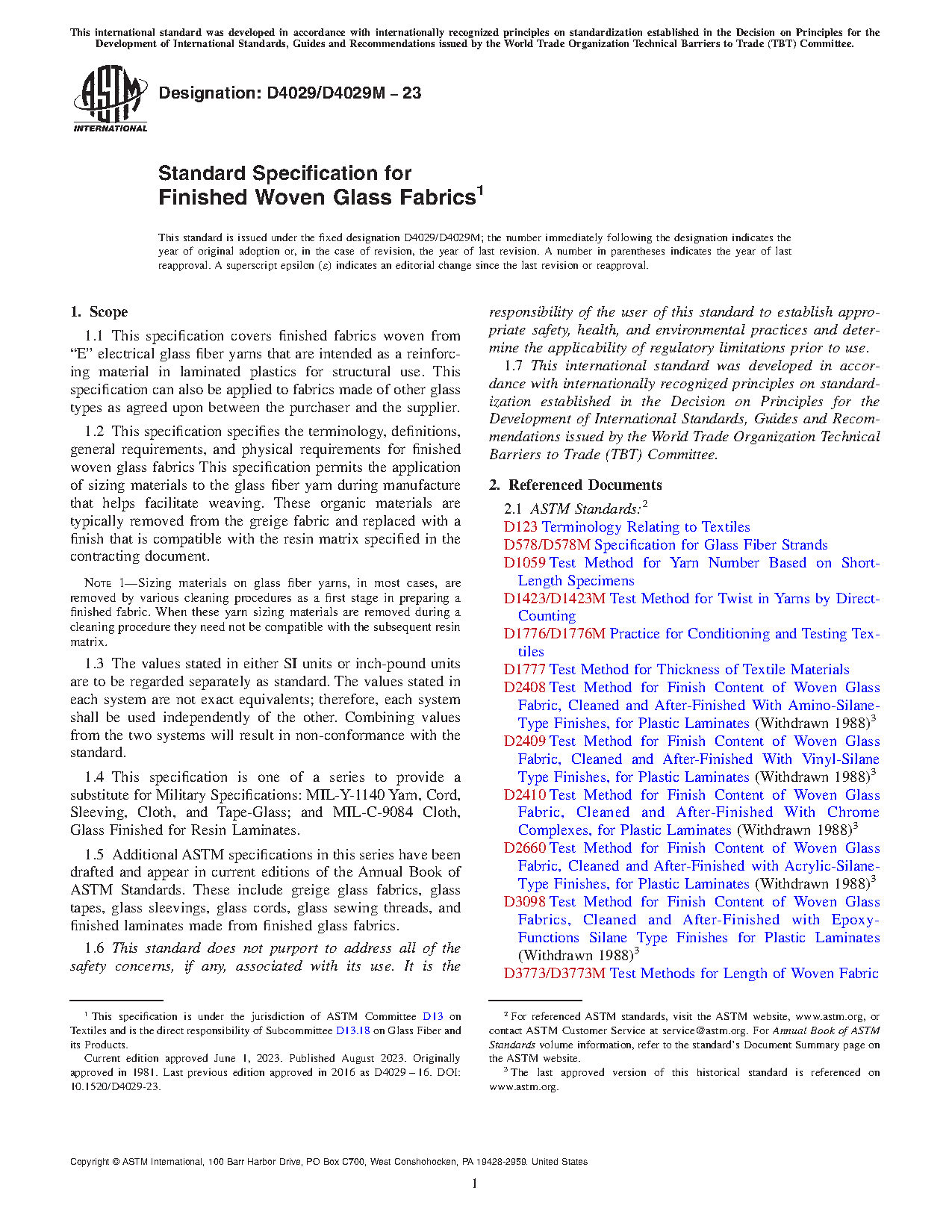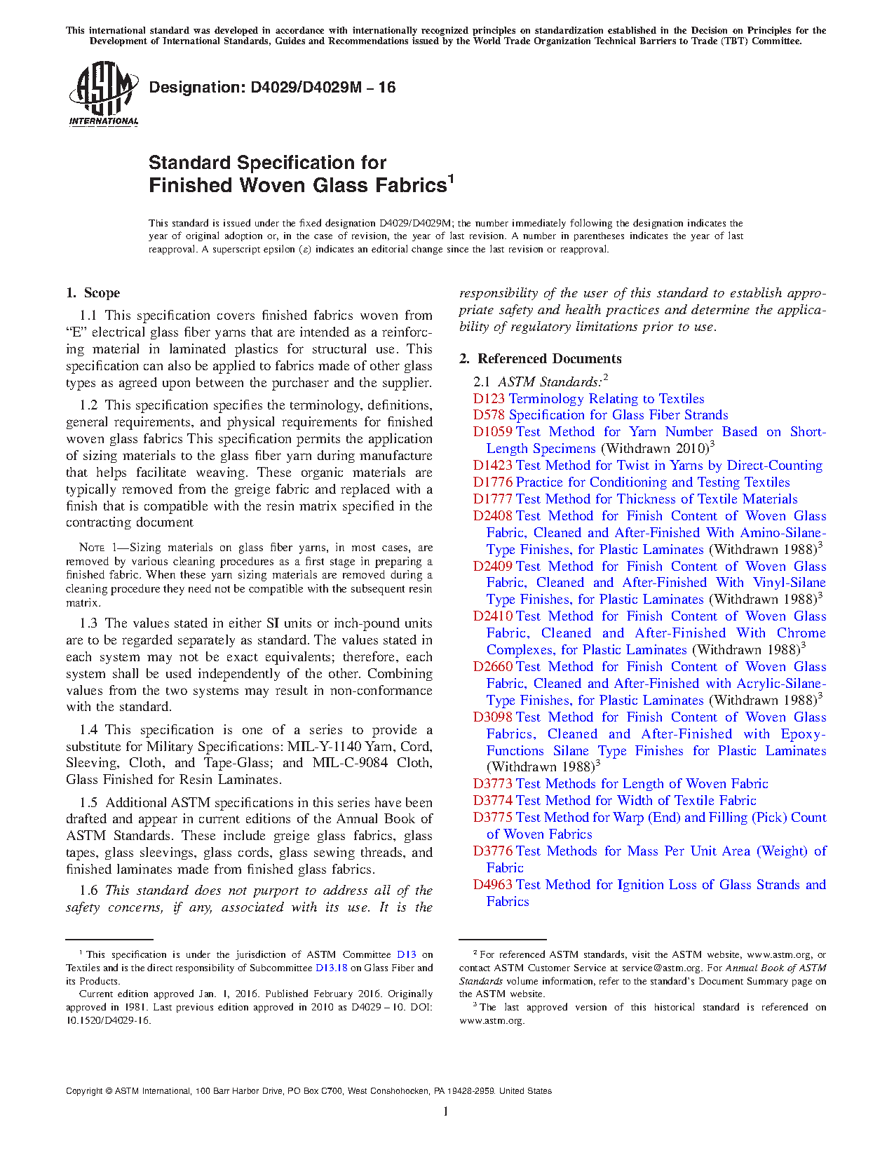 1.5 Additional ASTM specifications in this series have been drafted and appear in current editions of the Annual Book of ASTM Standards. These include greige glass fabrics, glass tapes, glass sleevings, glass cords, glass sewing threads, and finished laminates made from finished glass fabrics.