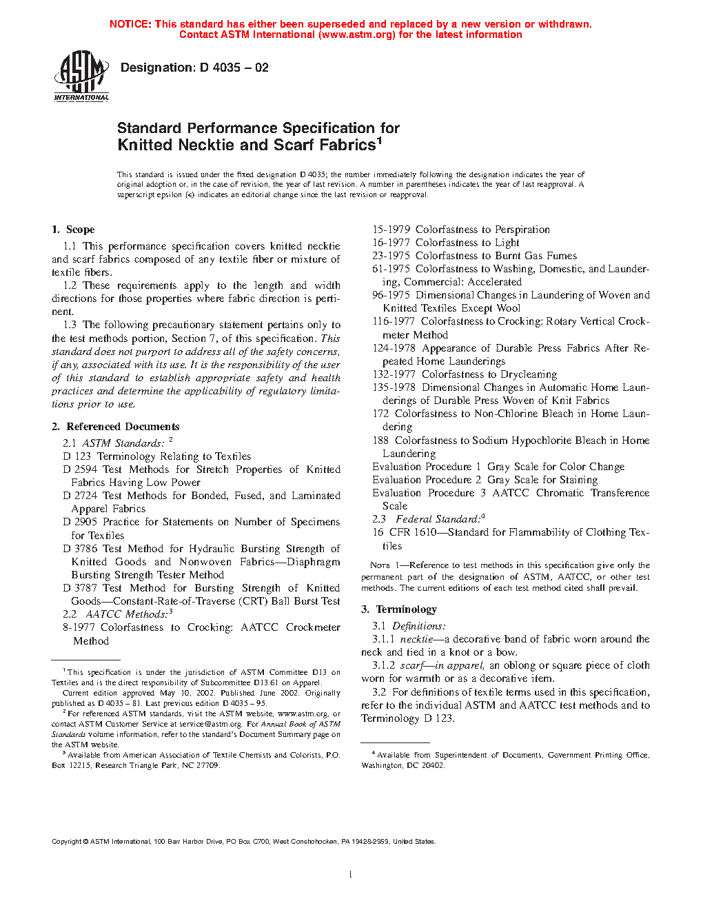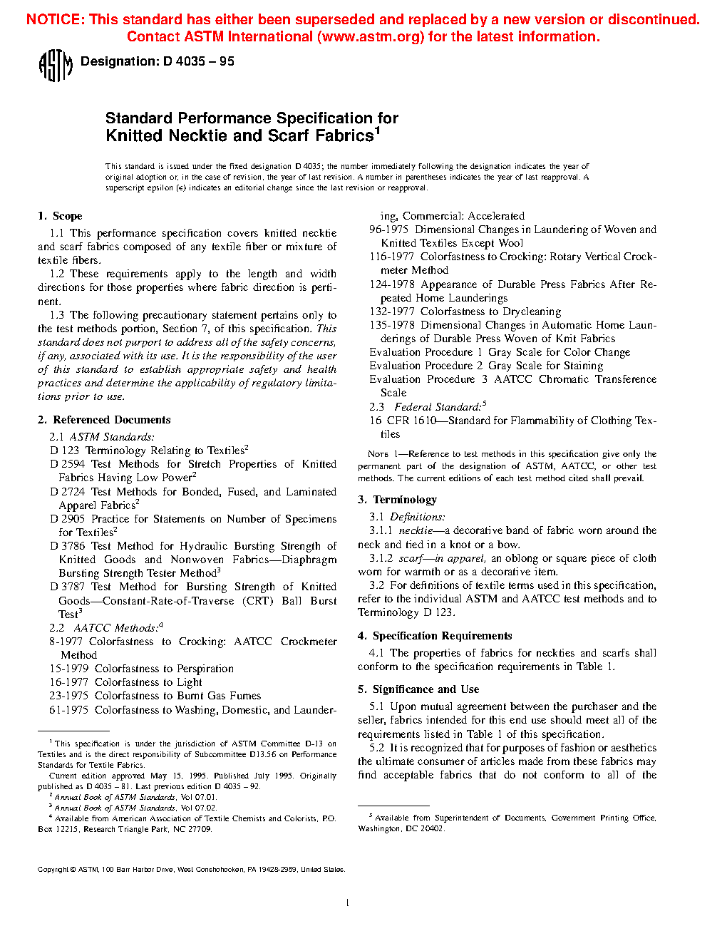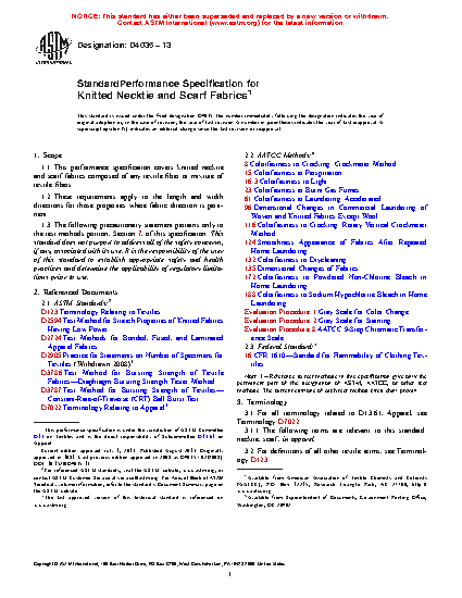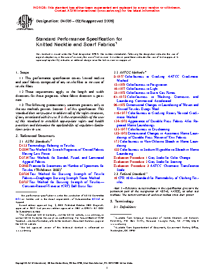 1.1 This performance specification covers knitted necktie and scarf fabrics composed of any textile fiber or mixture of textile fibers.