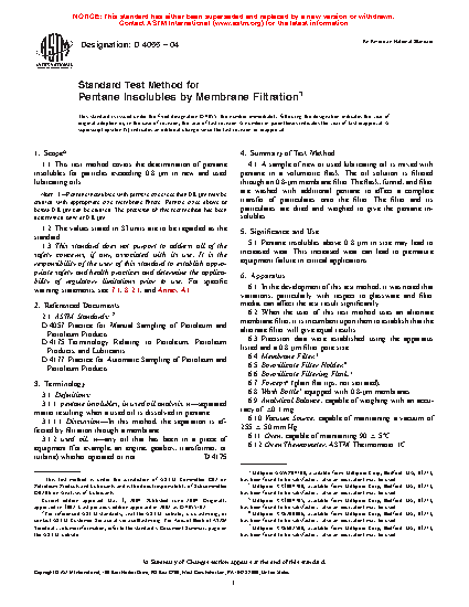 5.1 Pentane insolubles above 0.8 μm in size may lead to increased wear. This increased wear can lead to premature equipment failure in critical applications.