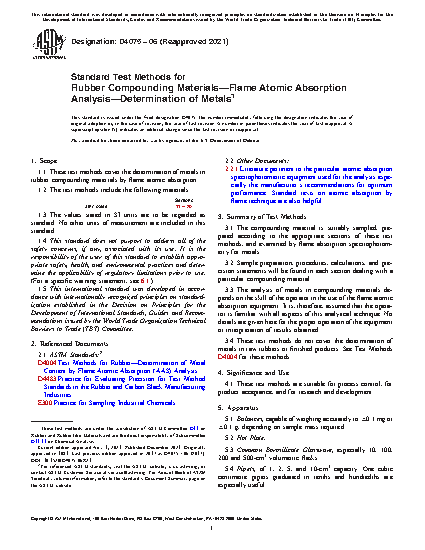 1.1 These test methods cover the determination of metals in rubber compounding materials by flame atomic absorption.