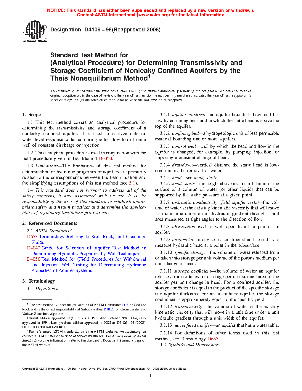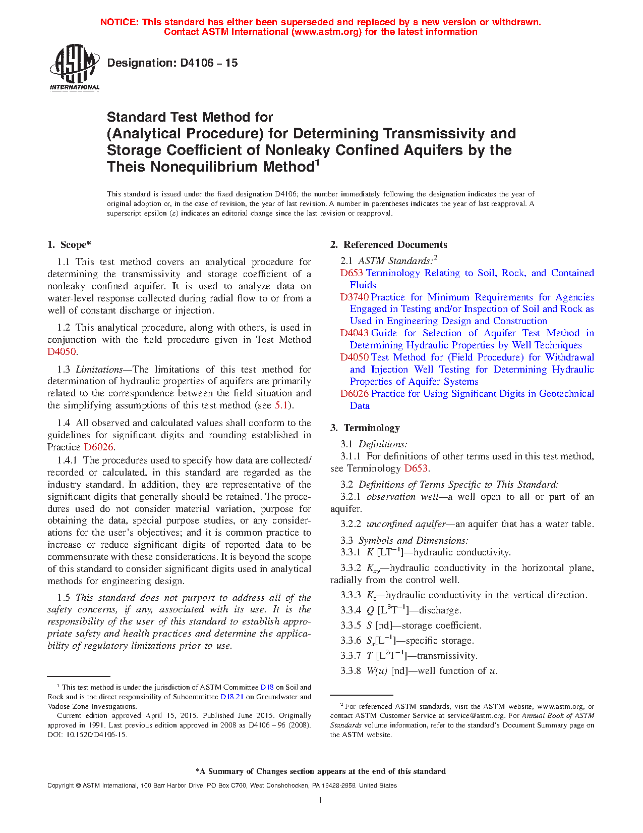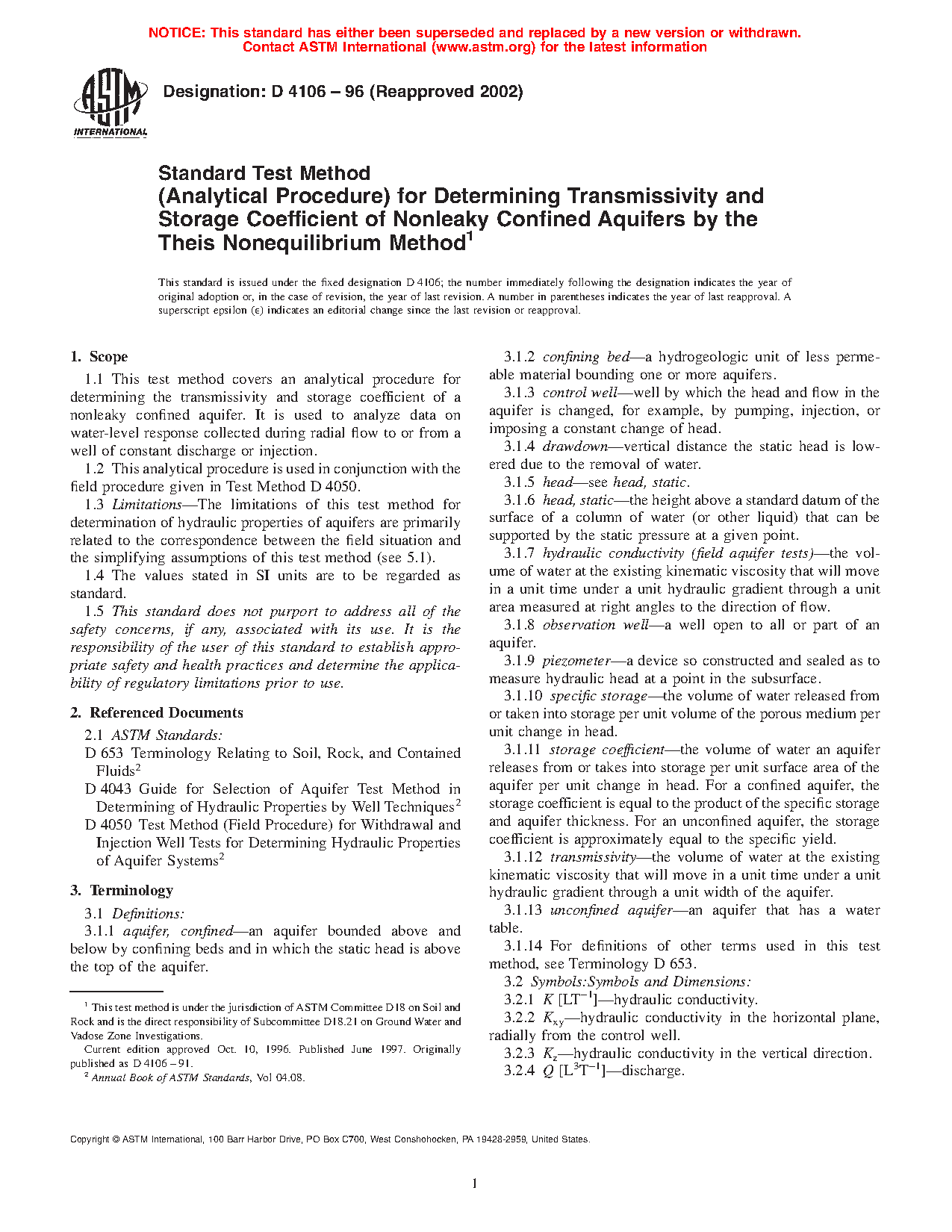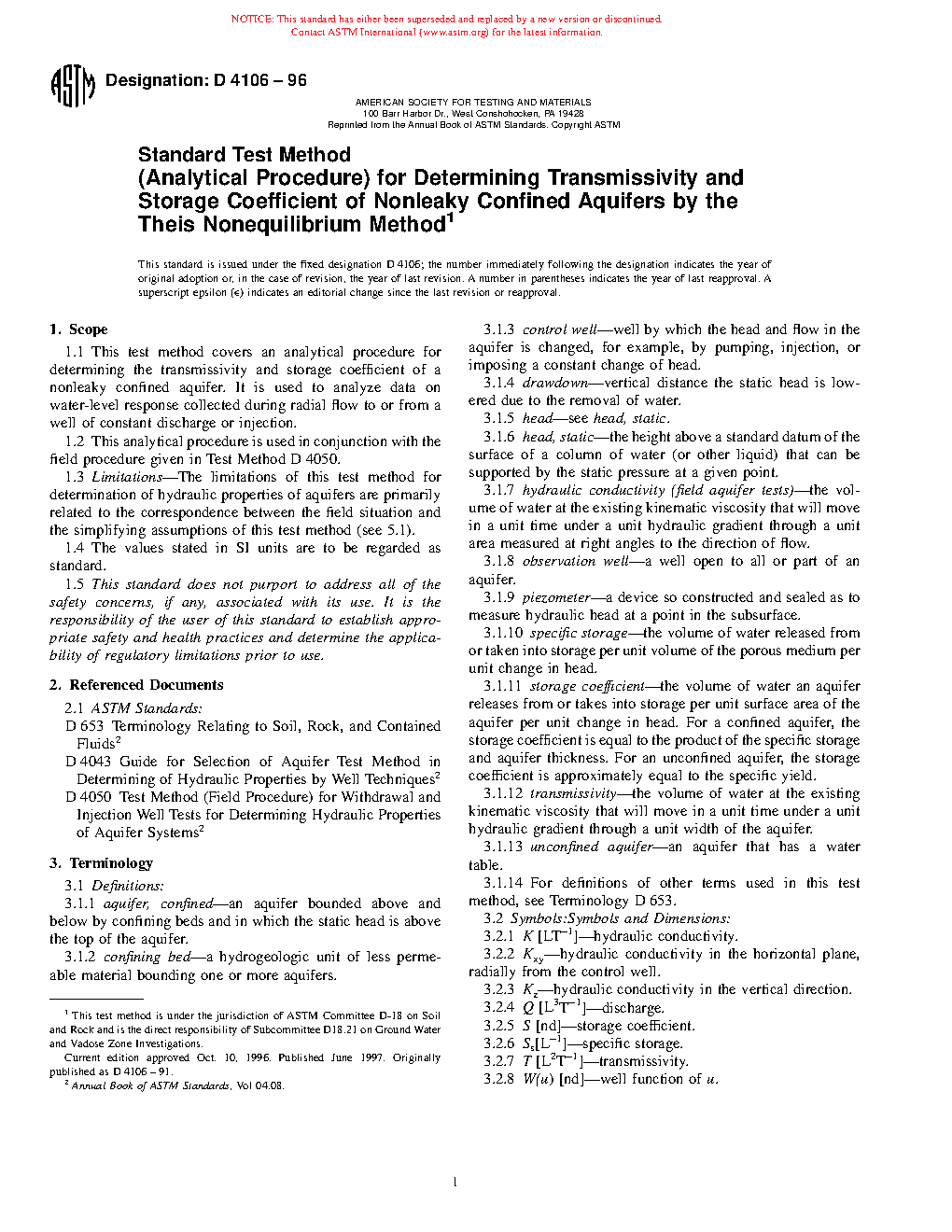 1.3 Limitations—The limitations of this practice for determination of hydraulic properties of aquifers are primarily related to the correspondence between the field situation and the simplifying assumptions of this practice (see 5.1).