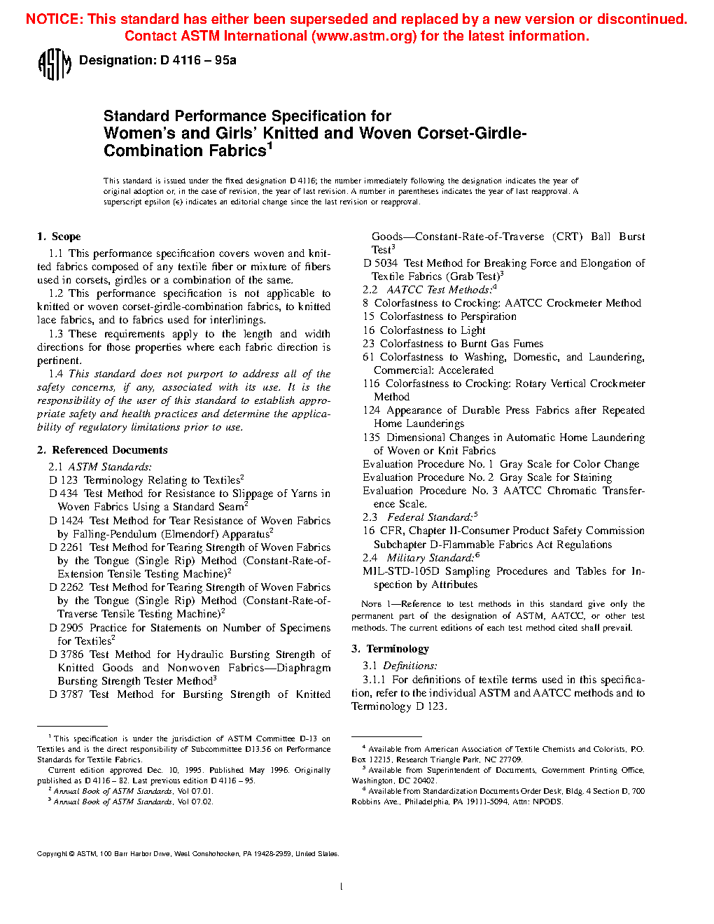 1.1 This performance specification covers woven and knitted fabrics composed of any textile fiber or mixture of fibers used in corsets, girdles or a combination of the same.