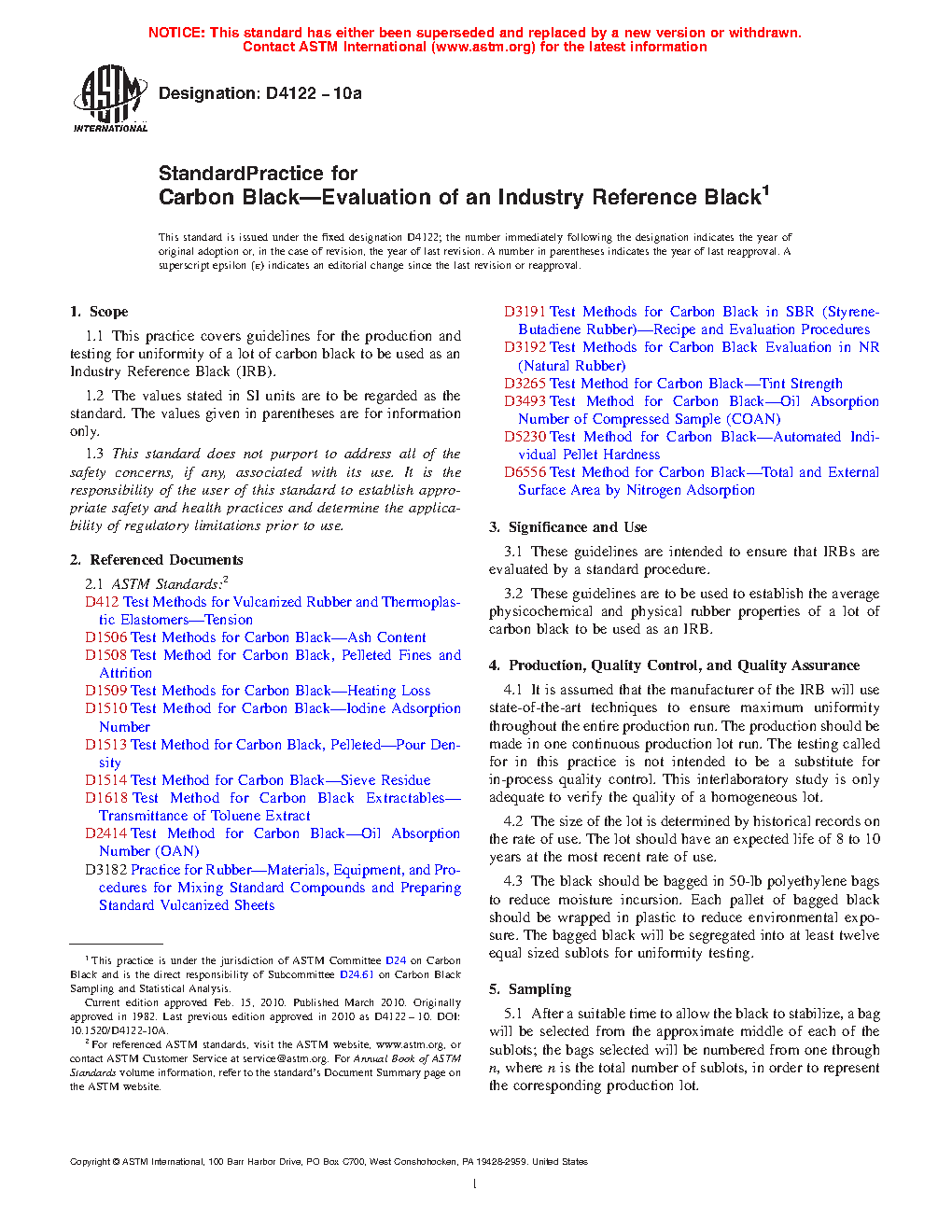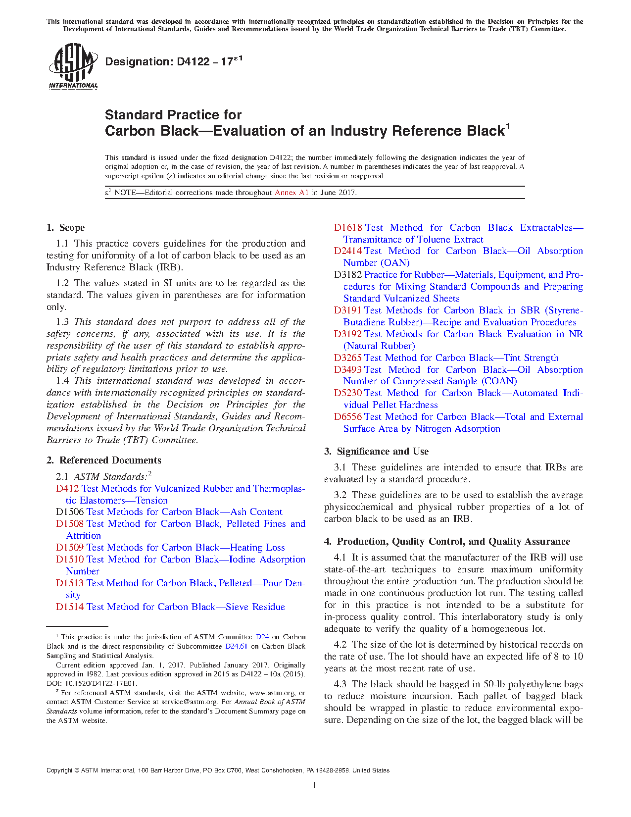 Standard Practice for Carbon Black—Evaluation of an Industry Reference Black