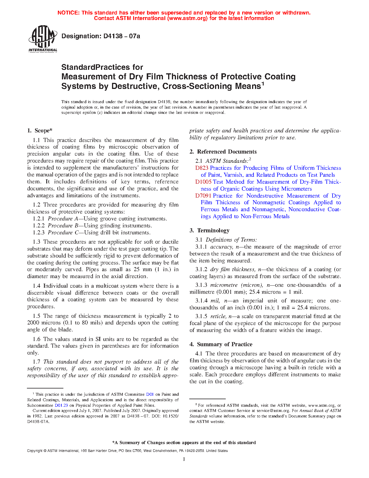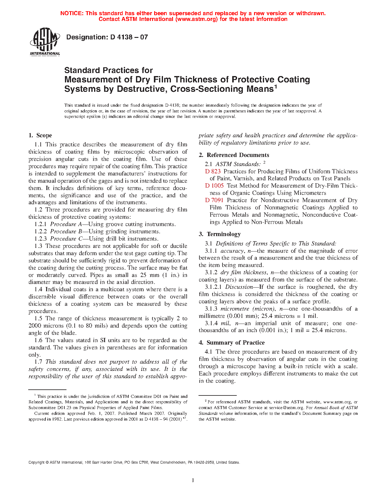 1.2 Three procedures are provided for measuring dry film thickness of protective coating systems: