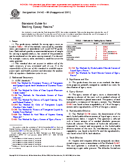 This guide directs the user to test methods that determine properties generally accepted as standard test items for classification of epoxy resins.