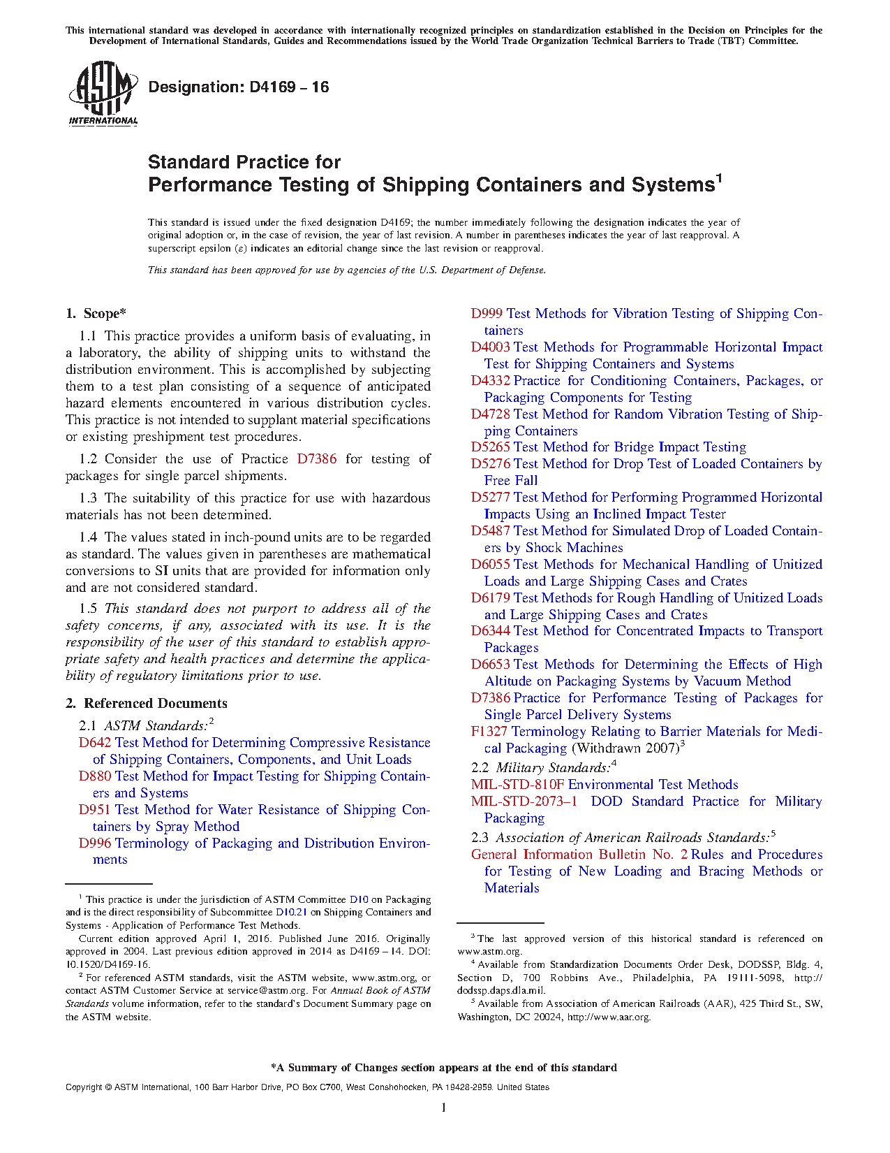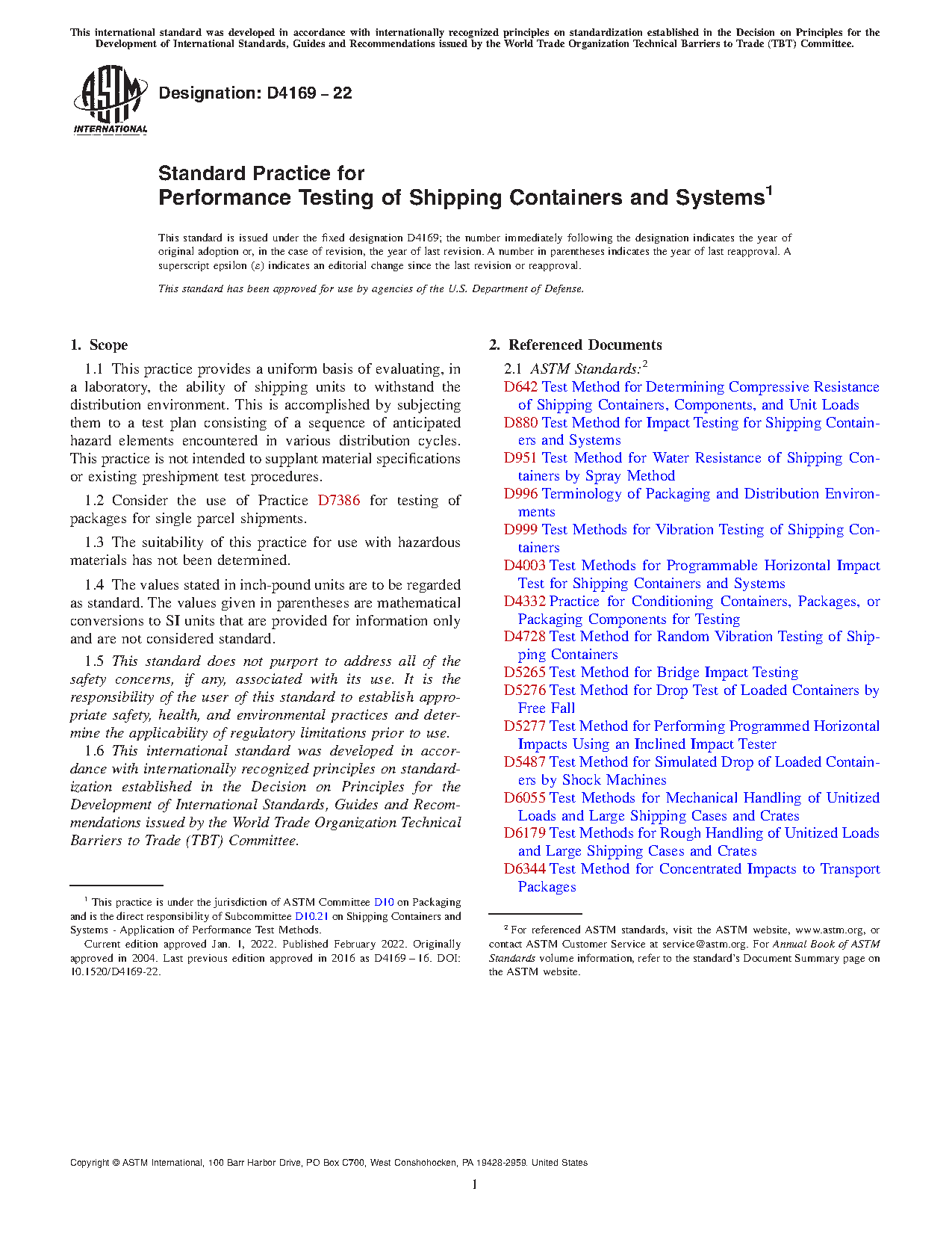 1.1 This practice provides a uniform basis of evaluating, in a laboratory, the ability of shipping units to withstand the distribution environment. This is accomplished by subjecting them to a test plan consisting of a sequence of anticipated hazard elements encountered in various distribution cycles. This practice is not intended to supplant material specifications or existing preshipment test procedures.