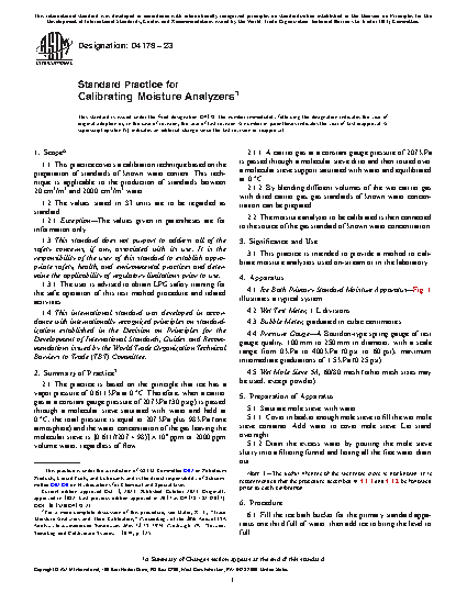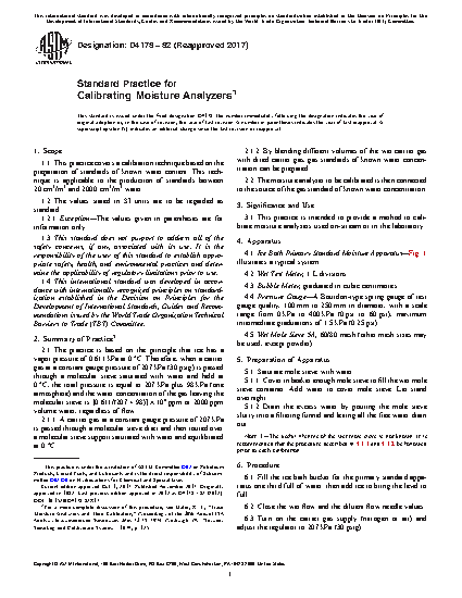 3.1 This practice is intended to provide a method to calibrate moisture analyzers used on-stream or in the laboratory.