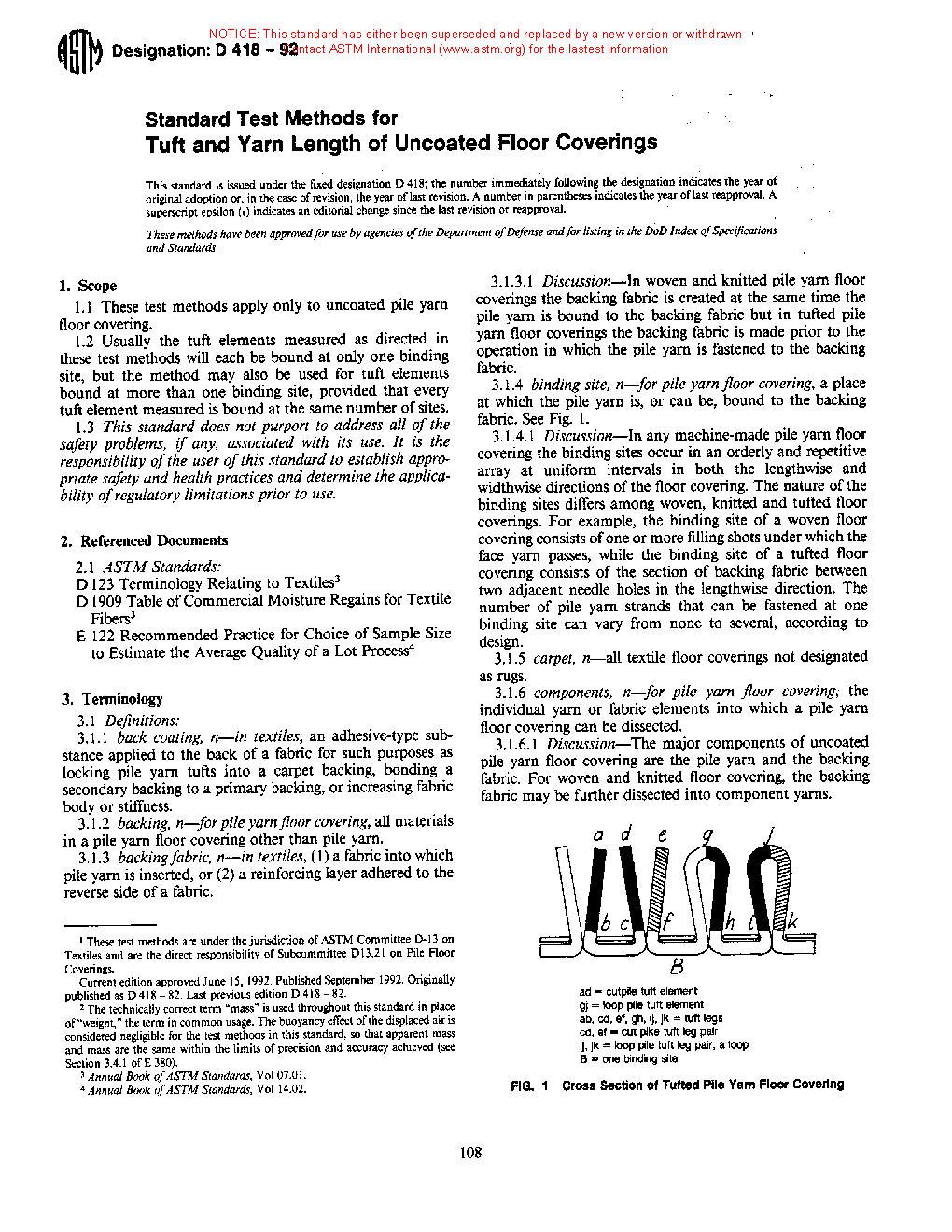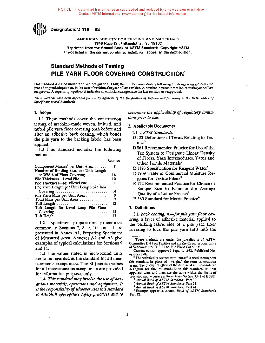 Standard Methods of Testing Pile Yarn Floor Covering Construction