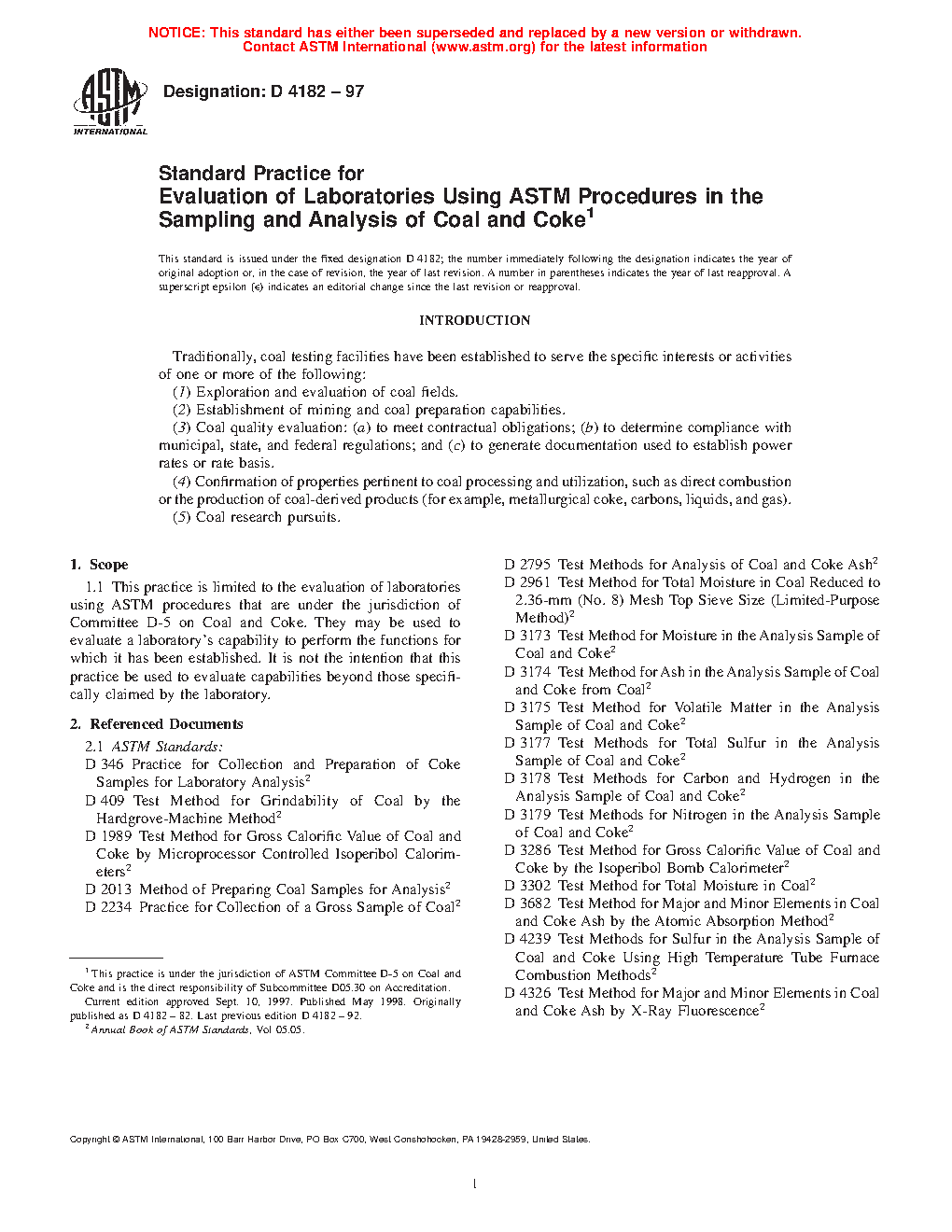 Standard Practice for Evaluation of Laboratories Using ASTM Procedures in the Sampling and Analysis of Coal and Coke
