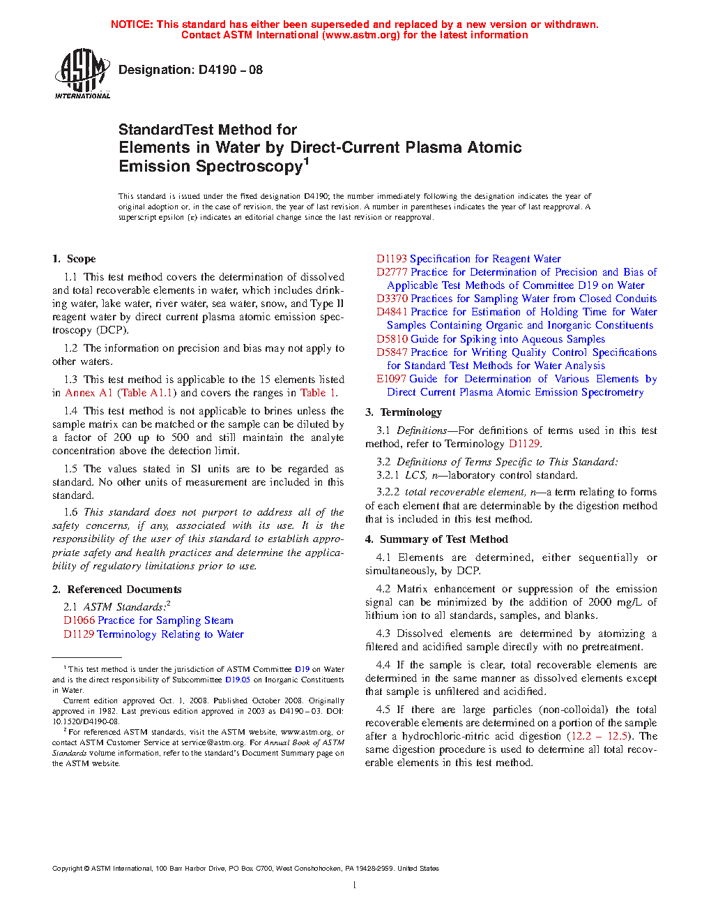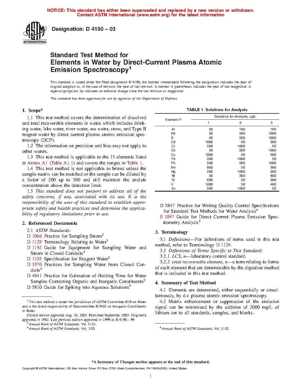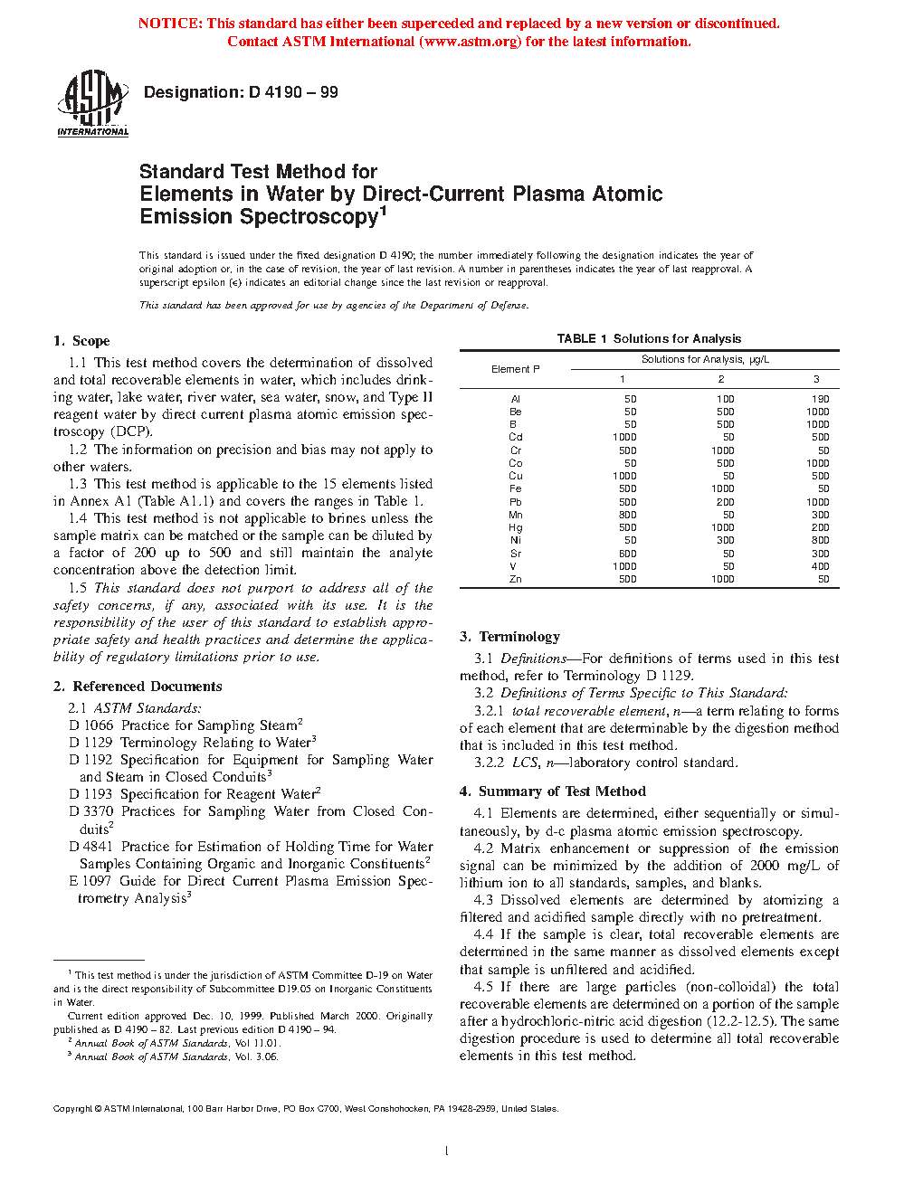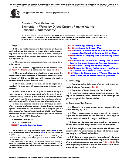 Standard Test Method for Elements in Water by Direct-Current Argon Plasma atomic Emission Spectroscopy