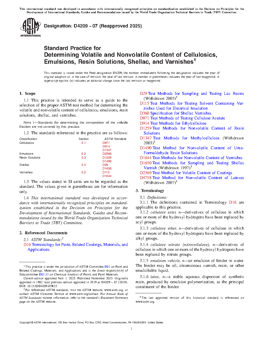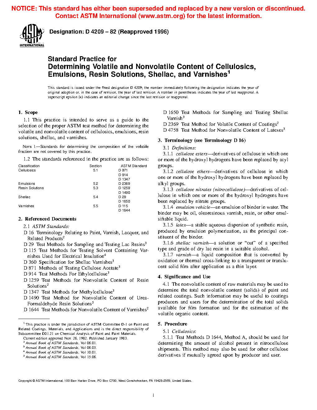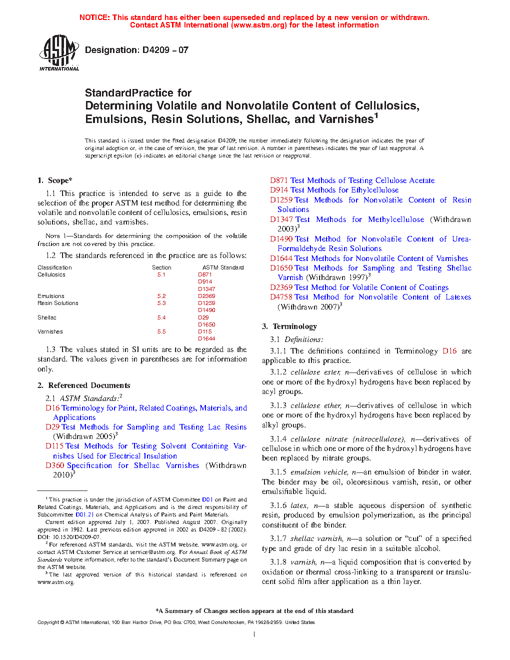 1.1 This practice is intended to serve as a guide to the selection of the proper ASTM test method for determining the volatile and nonvolatile content of cellulosics, emulsions, resin solutions, shellac, and varnishes.