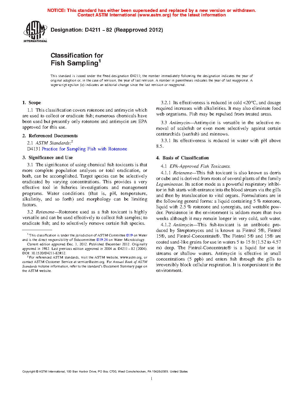 1.1.1 Lethal practices include the use of rotenone and antimycin which are used to collect or eradicate fish; numerous chemicals have been used but presently only rotenone and antimycin are U.S. Environmental Protection Agency (EPA)-approved for this use.