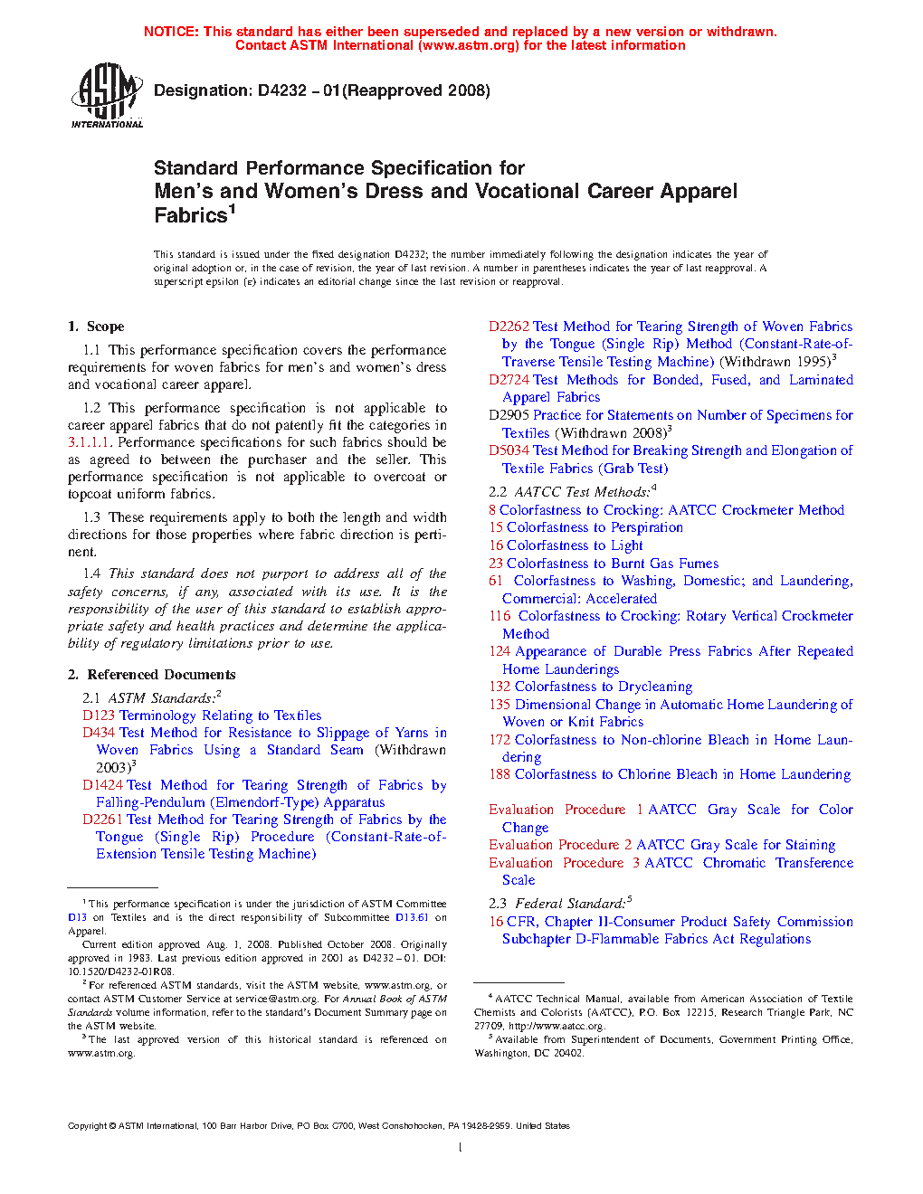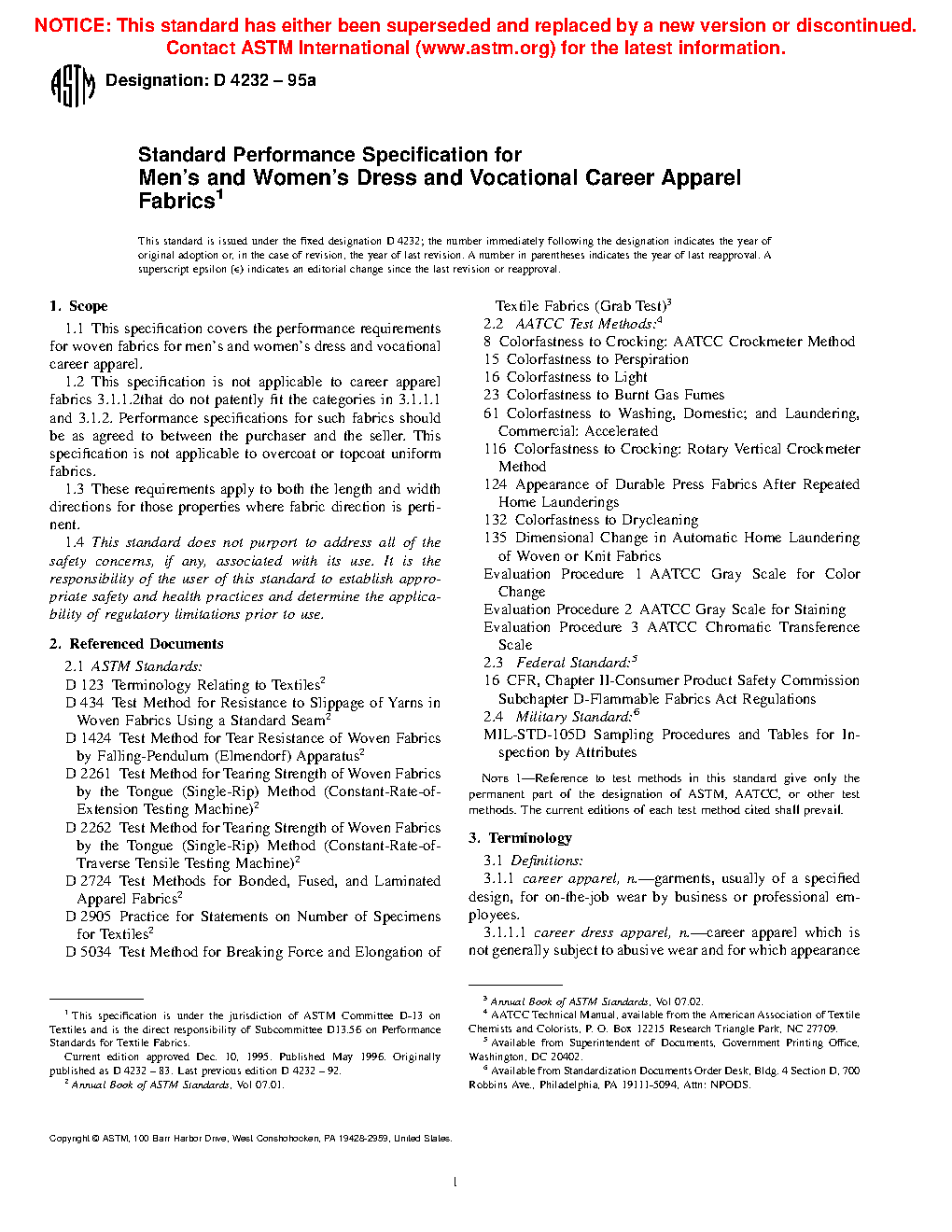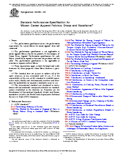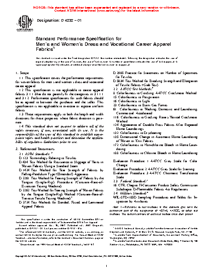 1.1 This performance specification covers the performance requirements for woven fabrics for career apparel: dress and vocational.