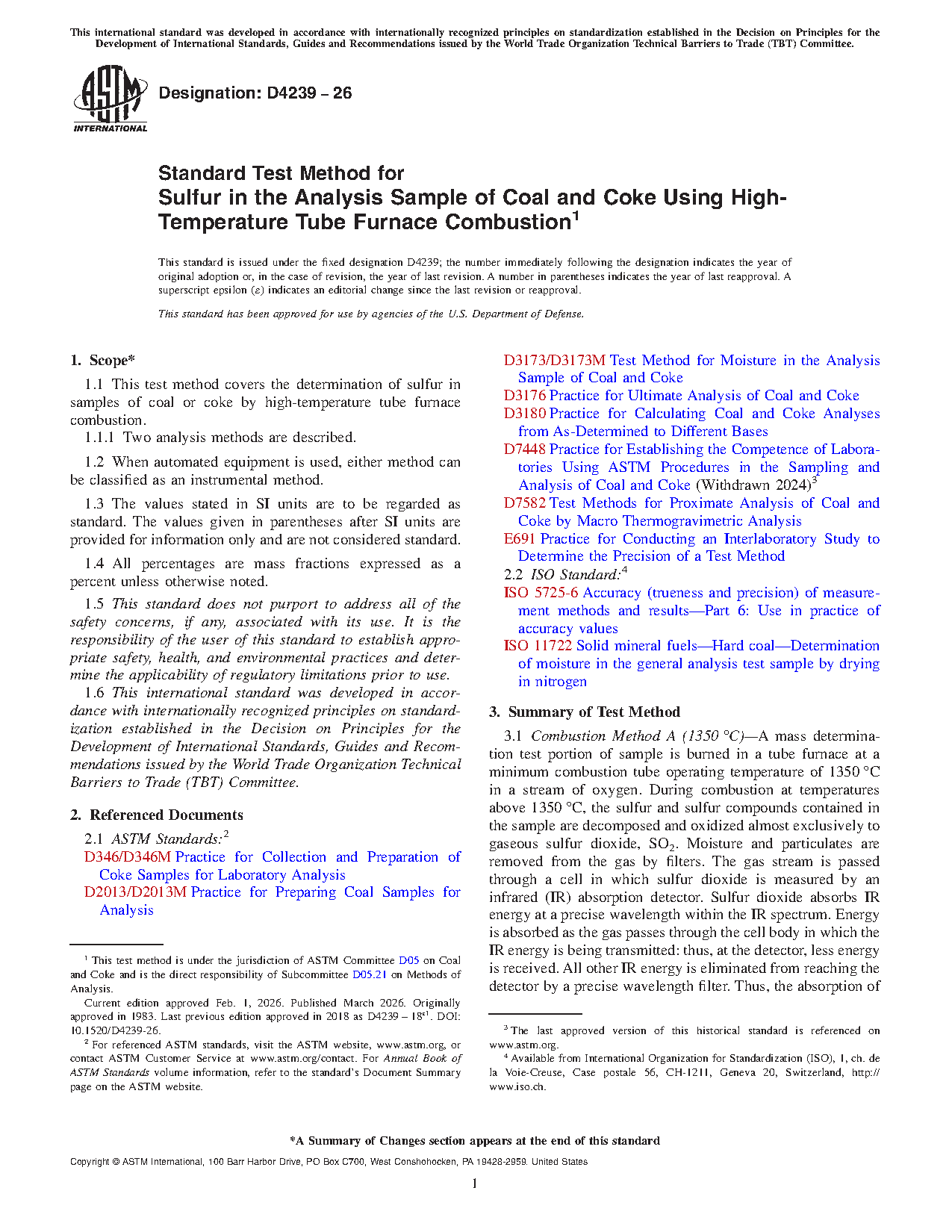 1.1 These test methods cover three alternative procedures using high-temperature tube furnace combustion methods for the rapid determination of sulfur in samples of coal and coke.