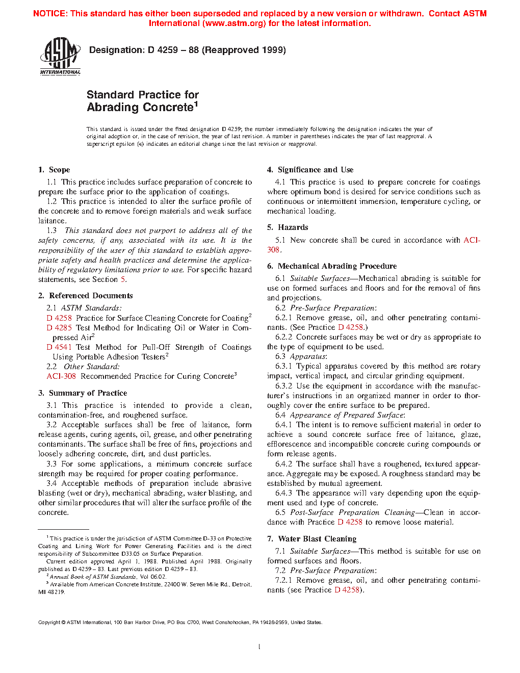 1.2 This practice is intended to create a surface profile in concrete and to remove foreign materials and weak surface laitance.