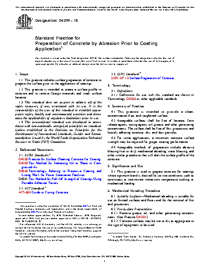 1.1 This practice includes surface preparation of concrete to prepare the surface prior to the application of coatings.