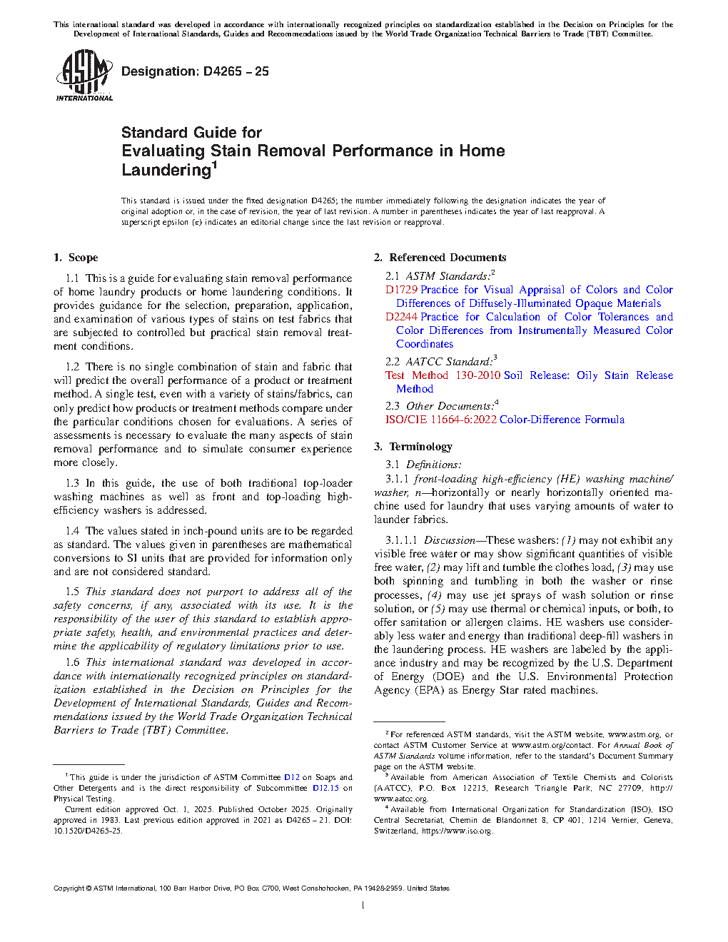 1.6 This international standard was developed in accordance with internationally recognized principles on standardization established in the Decision on Principles for the Development of International Standards, Guides and Recommendations issued by the World Trade Organization Technical Barriers to Trade (TBT) Committee.