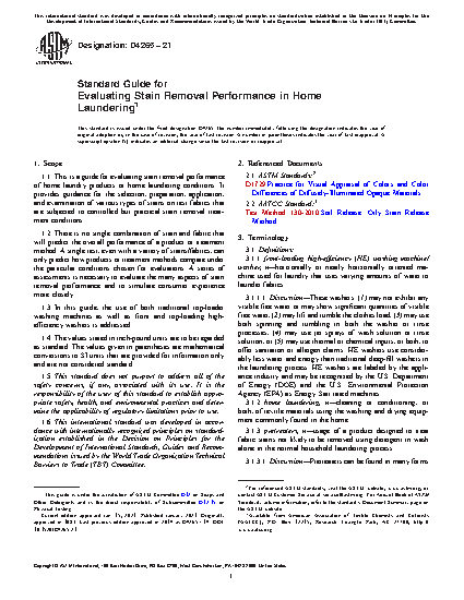 1.1 This is a guide for evaluating stain removal performance of home laundry products or home laundering conditions. It provides guidance for the selection, preparation, application, and examination of various types of stains on test fabrics that are subjected to controlled but practical stain removal treatment conditions.
