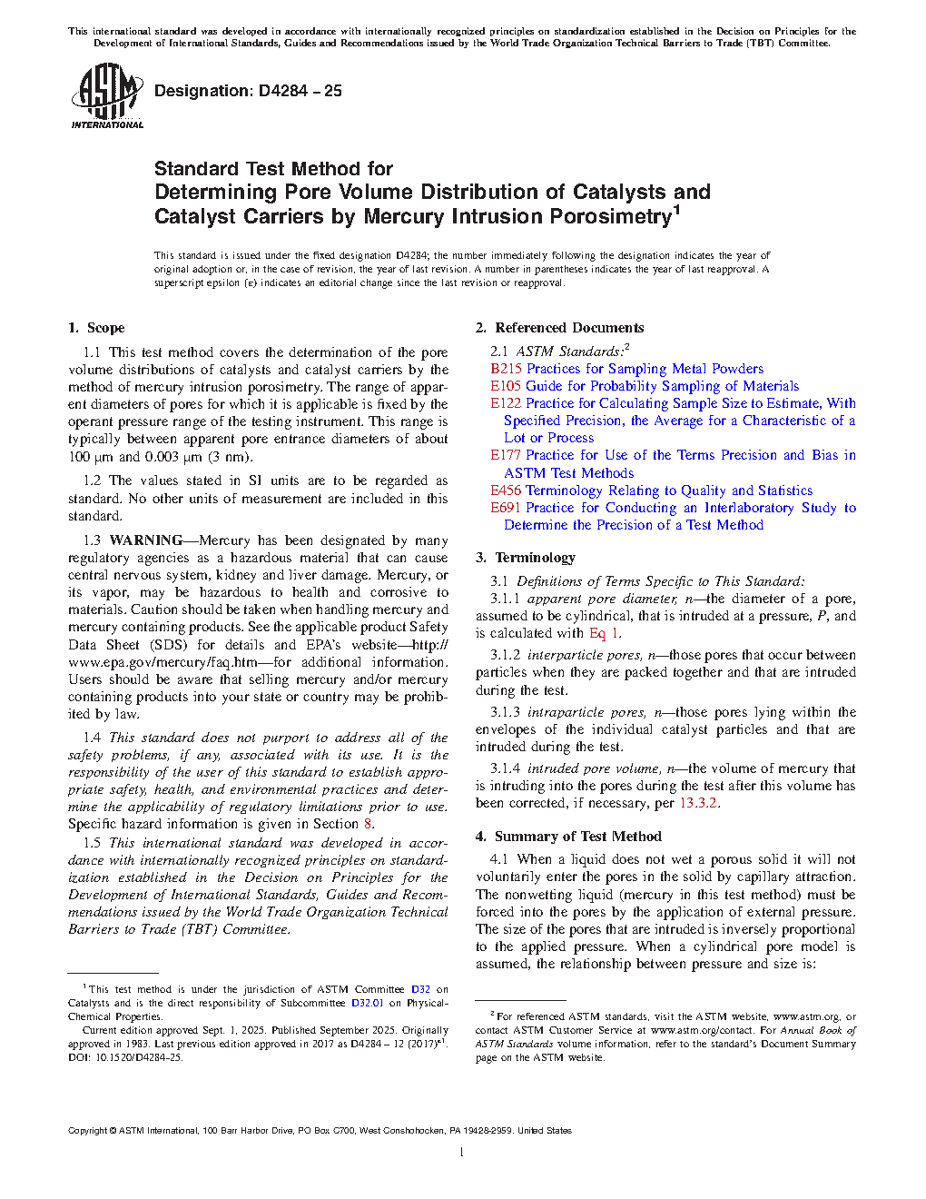 5.1 This test method is intended to determine the volume distribution of pores in catalysts and catalyst carriers with respect to the apparent diameter of the entrances to the pores. In general, both the size and volume of pores in a catalyst affect its performance. Thus, the pore volume distribution is useful in understanding a catalyst's performance and in specifying a catalyst that can be expected to perform in a desired manner.